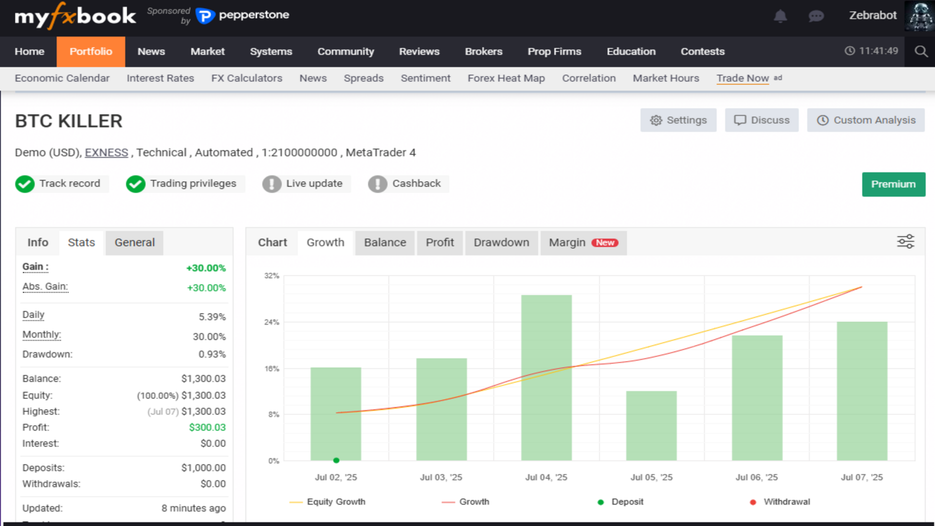 The Zebra bitcoin Scalping v1 (EA) is a specialized algorithmic trader designed exclusively for Bitcoin markets. Engineered for MetaTrader platforms, this high-frequency scalping bot exploits micro-price fluctuations in BTC/USD pairs with institutional-grade speed and accuracy. Combining order book analysis, volatility triggers, and aggressive risk management, with the 5 minute time frame, it executes 5- 10 trades daily for consistent profits – all while you sleep. NO MARTINGALE, NO GRID BLOCK THEORY. ALL PRICE ACTION