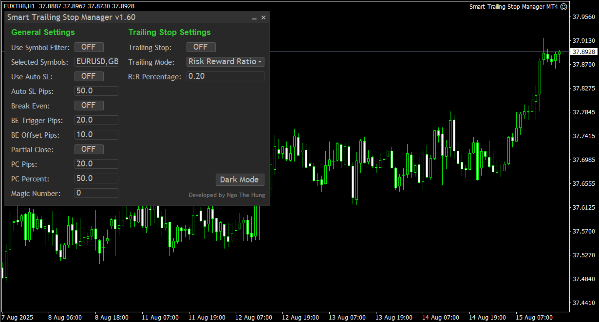 Simply attach it to any MT4 chart, configure trailing modes and parameters, and let it run.