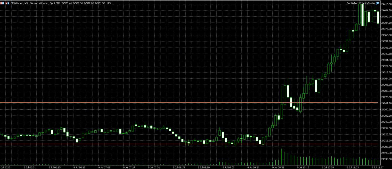 Uses a sliding sampling window ( SampleWindowSize ) to detect recent price ranges.