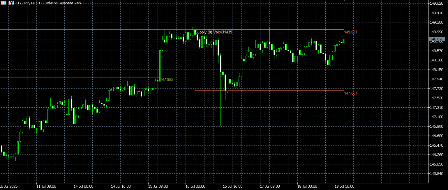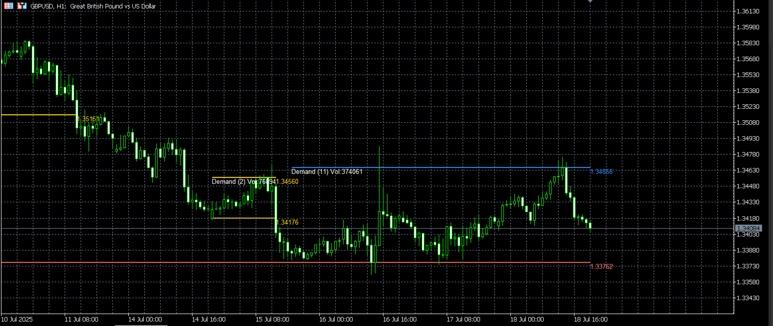 This Demand & Supply Zone Indicator with Volume Filtering is a technical analysis tool for MetaTrader that identifies key price zones where buying (demand) or selling (supply) pressure is concentrated. It uses fractals, volume analysis, and price action to detect and highlight these zones on the chart.
