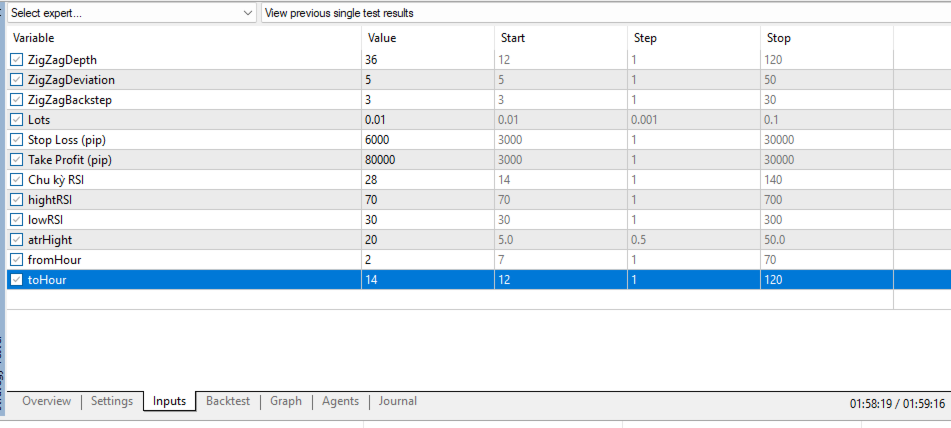 * EA works effectively with: H1 frame (5h-> 13h GMT+0) , Zigzag(30-5-3), RSI(30-70)