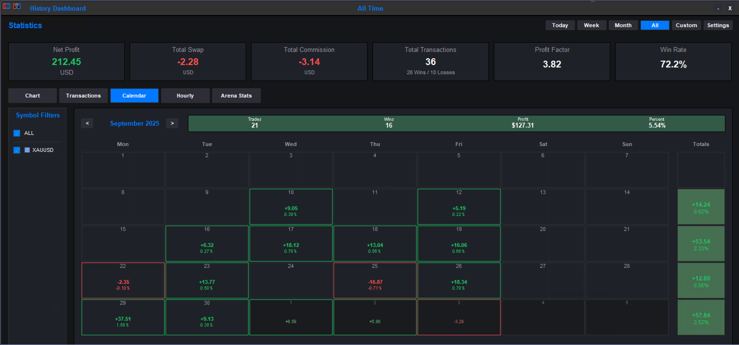 Intelligent Cross-Broker Mode: When using different brokers, the expert uses an intelligent price calculation algorithm to adjust for price discrepancies, ensuring accurate trade execution. For this mode, analysis must be performed on a high-quality data feed like ICMarkets or Pepperstone in TradingView.