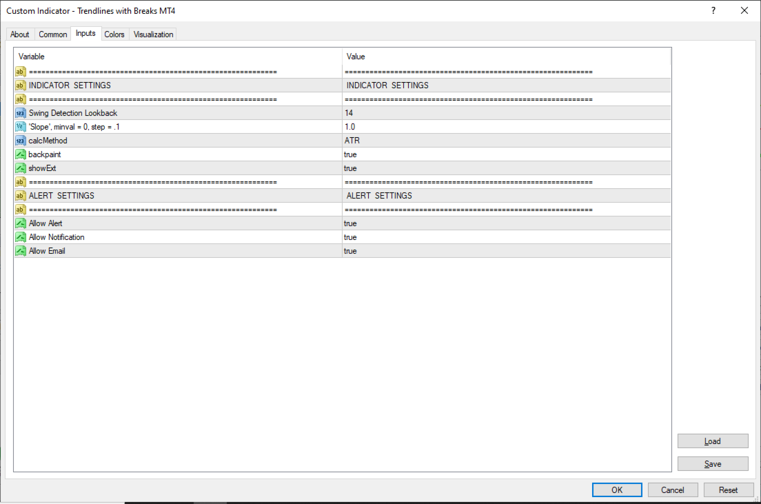 - Efficient and User-Friendly: Lightweight code for smooth MT4 performance, with granular settings for swing detection and calculation methods to optimize for breakout trading.