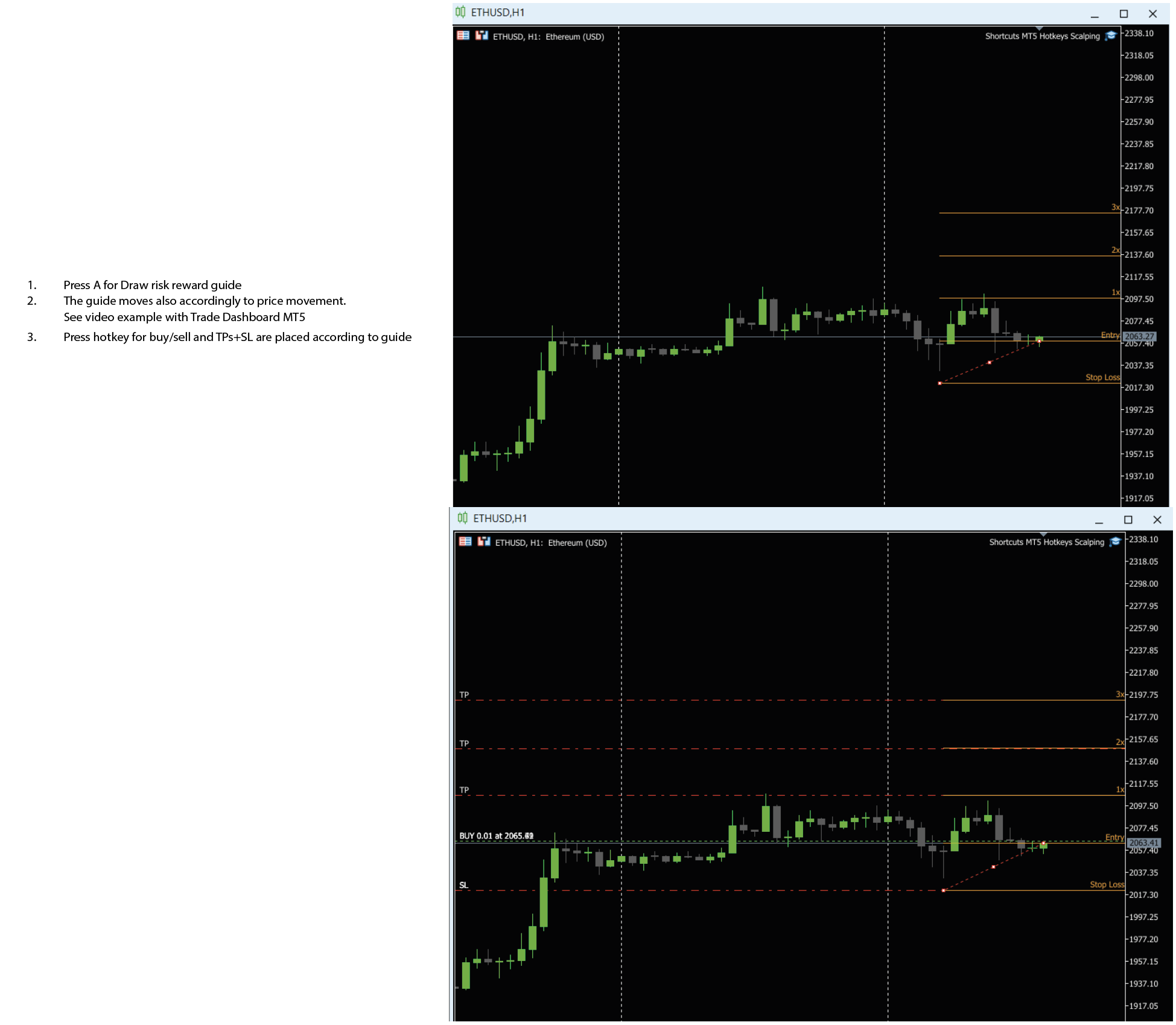 2. The guide moves also accordingly to price movement. See video example with Trade Dashboard MT5