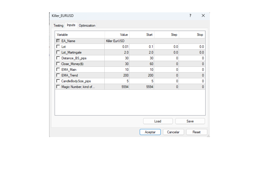The "Killer EurUSD" EA is an automated trading system developed specifically for trading the EUR/USD currency pair on the MetaTrader 4 platform. This Expert Advisor incorporates a strategy based on exponential moving averages (EMAs) with risk management.