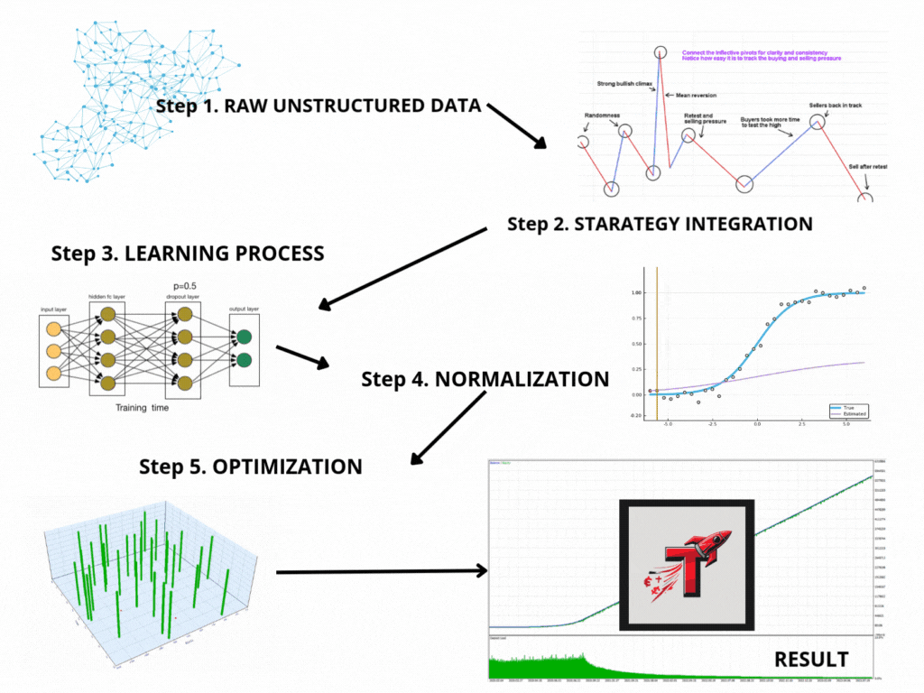 T_Rocket, based on vector machine learning, is an advanced trading tool that uses the latest advances in computing technology to analyze the forex market and predict future price movements. The Expert Advisor will use vector machine learning to learn huge amounts of historical data and quickly and efficiently detect patterns in the market. It will use a sophisticated and complex proprietary algorithm which uses advanced mathematical calculations to solve complex problems and optimize performance. When creating this EA I will use an open-source AI models to analyze unstructured data to further improve its predictions. The EA will be able to automatically make trades based on its analysis and forecasts, while incorporating a risk management strategy to minimize potential losses. This sophisticated advisor, driven by sophisticated mathematical computing and a neural network, will be a valuable asset to traders, providing them with the tools and knowledge they need to make better informed decisions and improve their chances of success in a dynamic and complex currency market.
