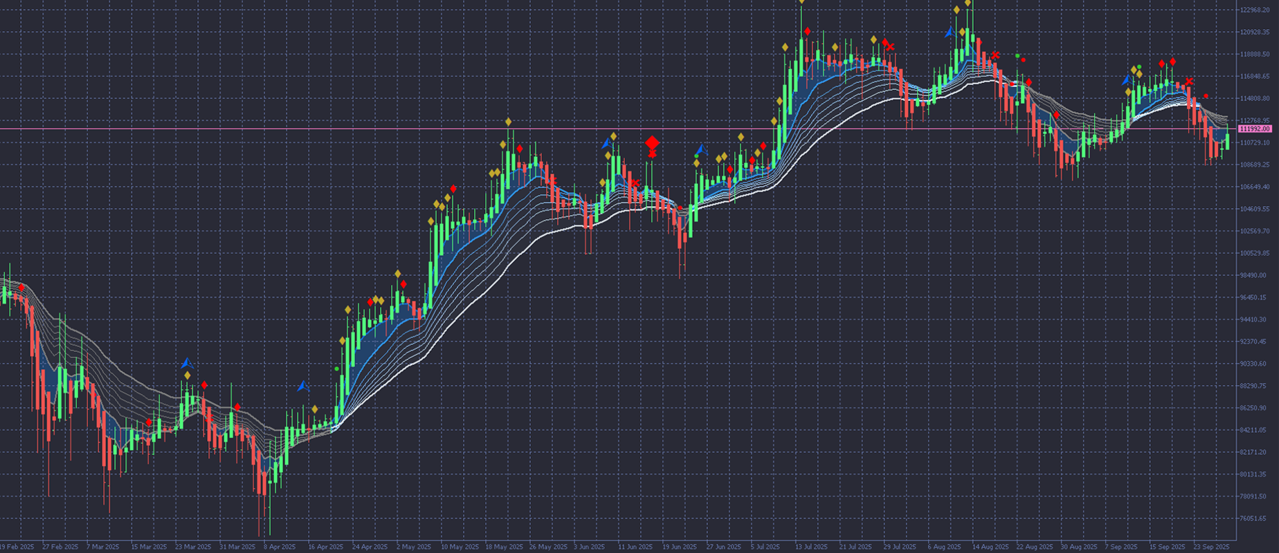 While Meta Cipher A focuses on overlaying signals directly on price action, Meta Cipher B operates as an oscillator beneath the chart. Together they provide a complete market picture: