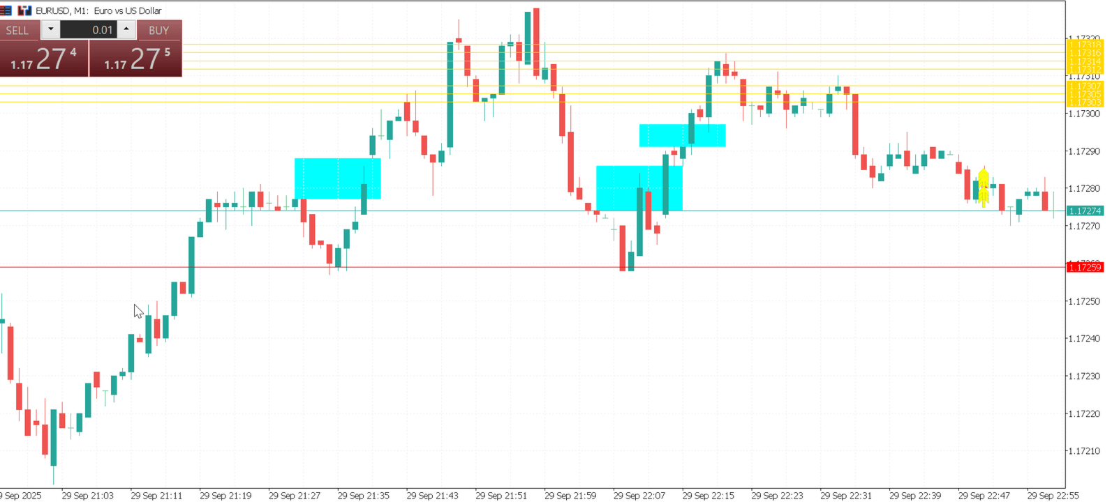 - Dynamic colored zones (green for buy, red for sell)