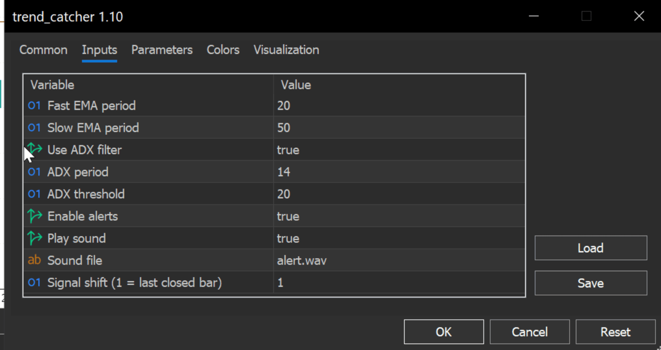 - ADXLevel (int, default: 20) - ADX threshold for signals