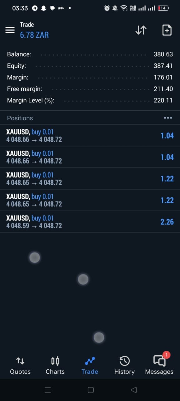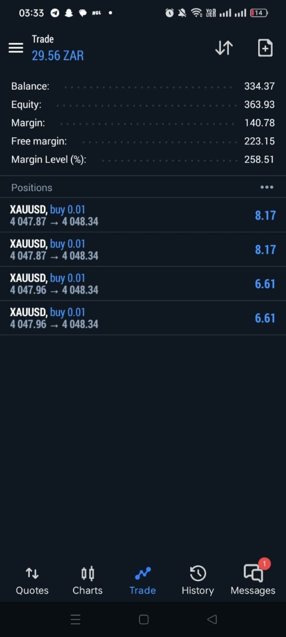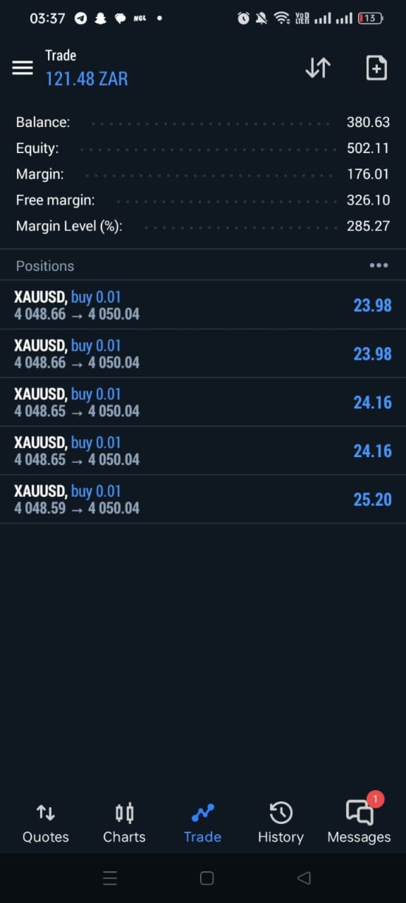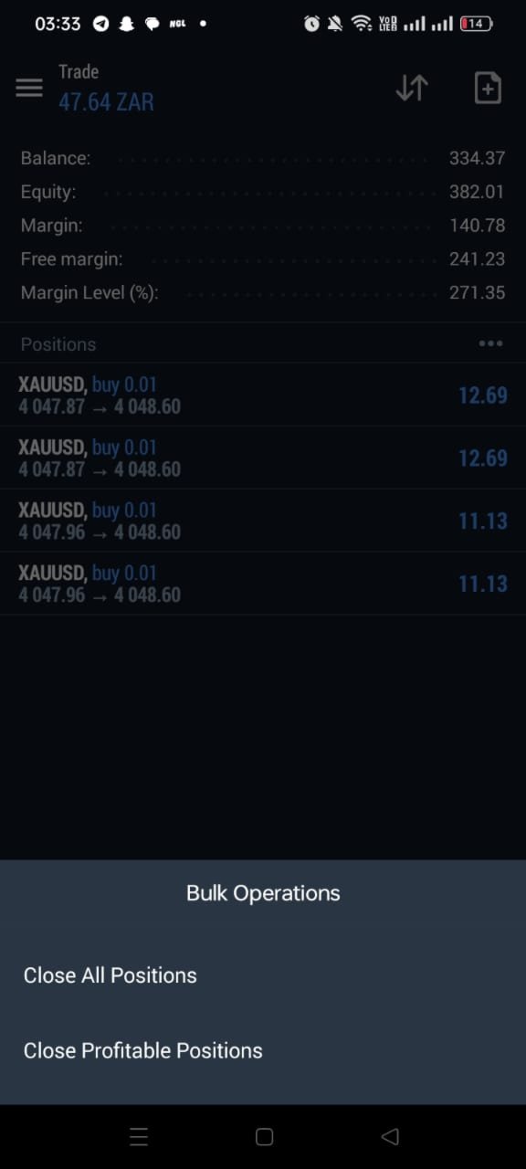 The Katlego Moloto EA is an easy-to-use EA. It trades for 24 hour a day and 7 days a week. The EA is new, but it generates capital like world class bot. The EA have 6 modes that you can use depending on your account equity. if you have a problem with the EA, call me on +27655977156 or WhatsApp +27736400844. If the EA hits 300 sales before December, I will code a free EA for Everyone who bought it.