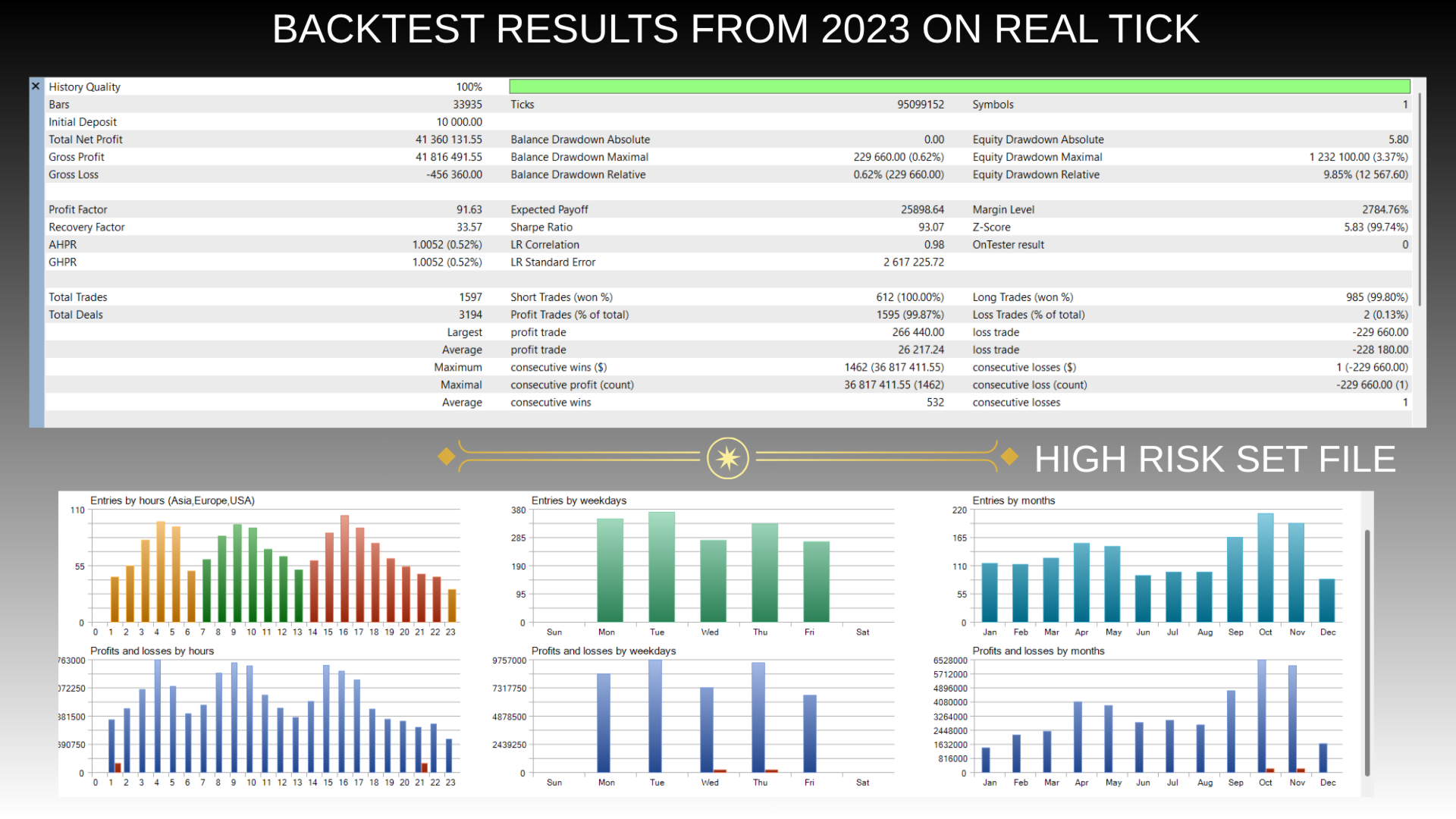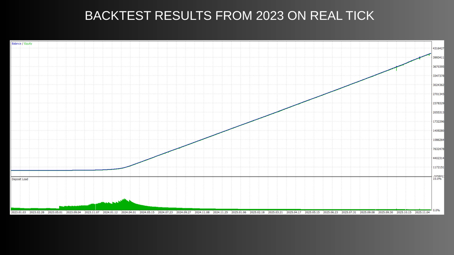 The EA is optimized to maximize trade opportunities per day while balancing grid size, signal frequency, and risk exposure.