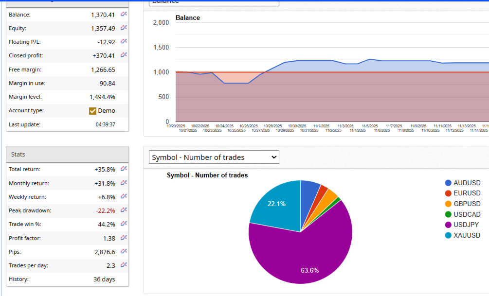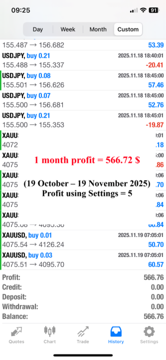 There is no EA in this marketplace with the following great combination of features. Almost every EA in this marketplace, stop loss is higher than take profit which is not sustainable for long term. Proprietary algorithm is the strength of this EA.