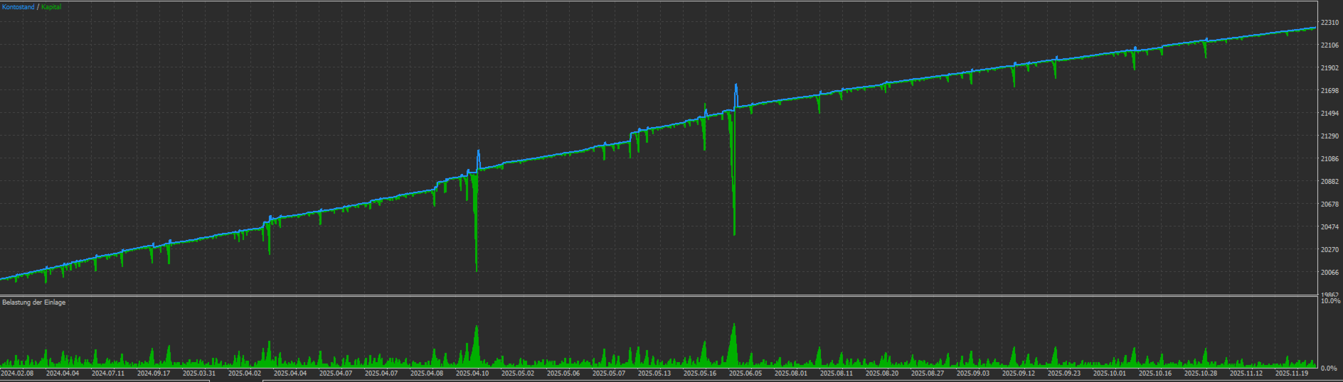 Angehängt sind Screenshots der Backtests auf EURUSD M5 für die Jahre 2024 und 2025, Kontogröße 20.000 USD sowie ein Beispiel Preset mit welchem getestet wurde.