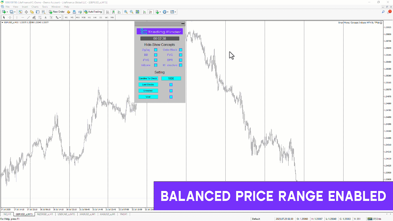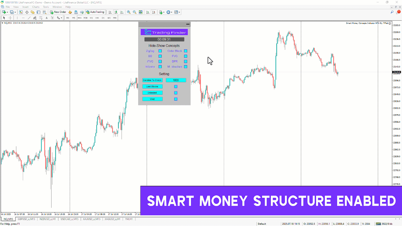 This automated analysis expert is built around institutional order-flow logic and liquidity-based market behavior. It identifies and draws core structural elements—such as breaks of structure, order blocks, fair value gaps, and related components—in real time. As price evolves, the expert continuously scans the chart and overlays accurate analytical visuals for immediate interpretation.