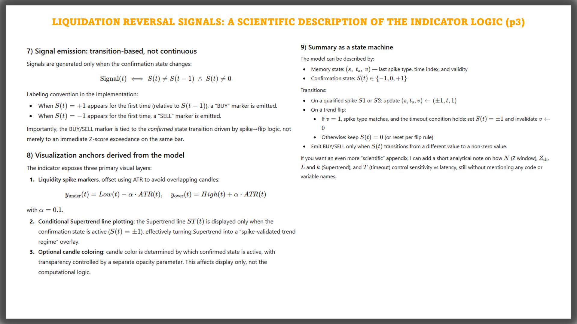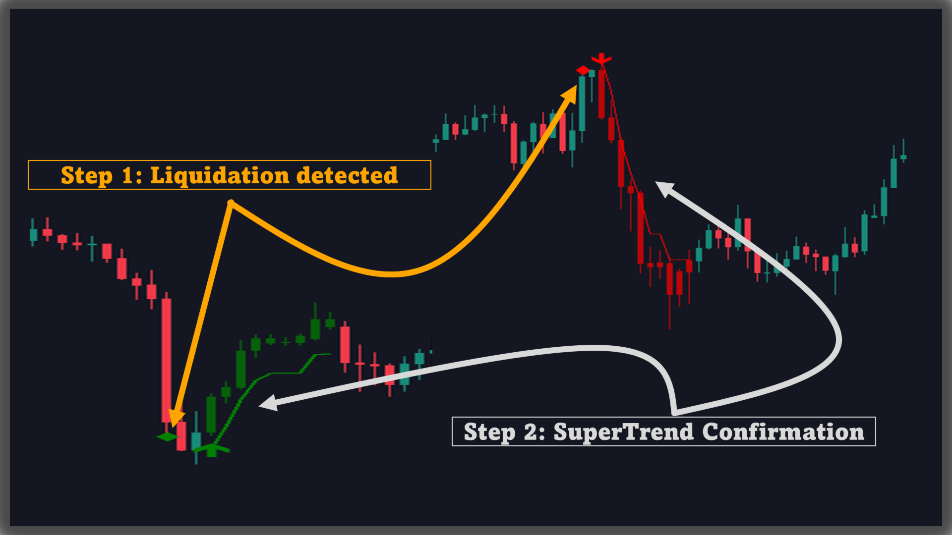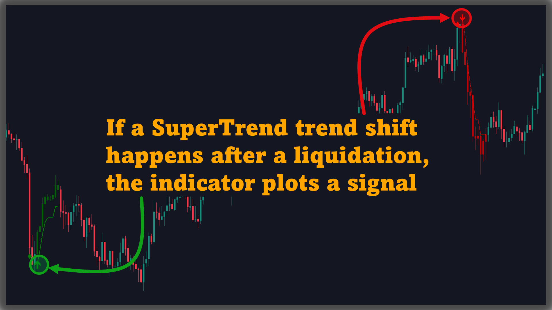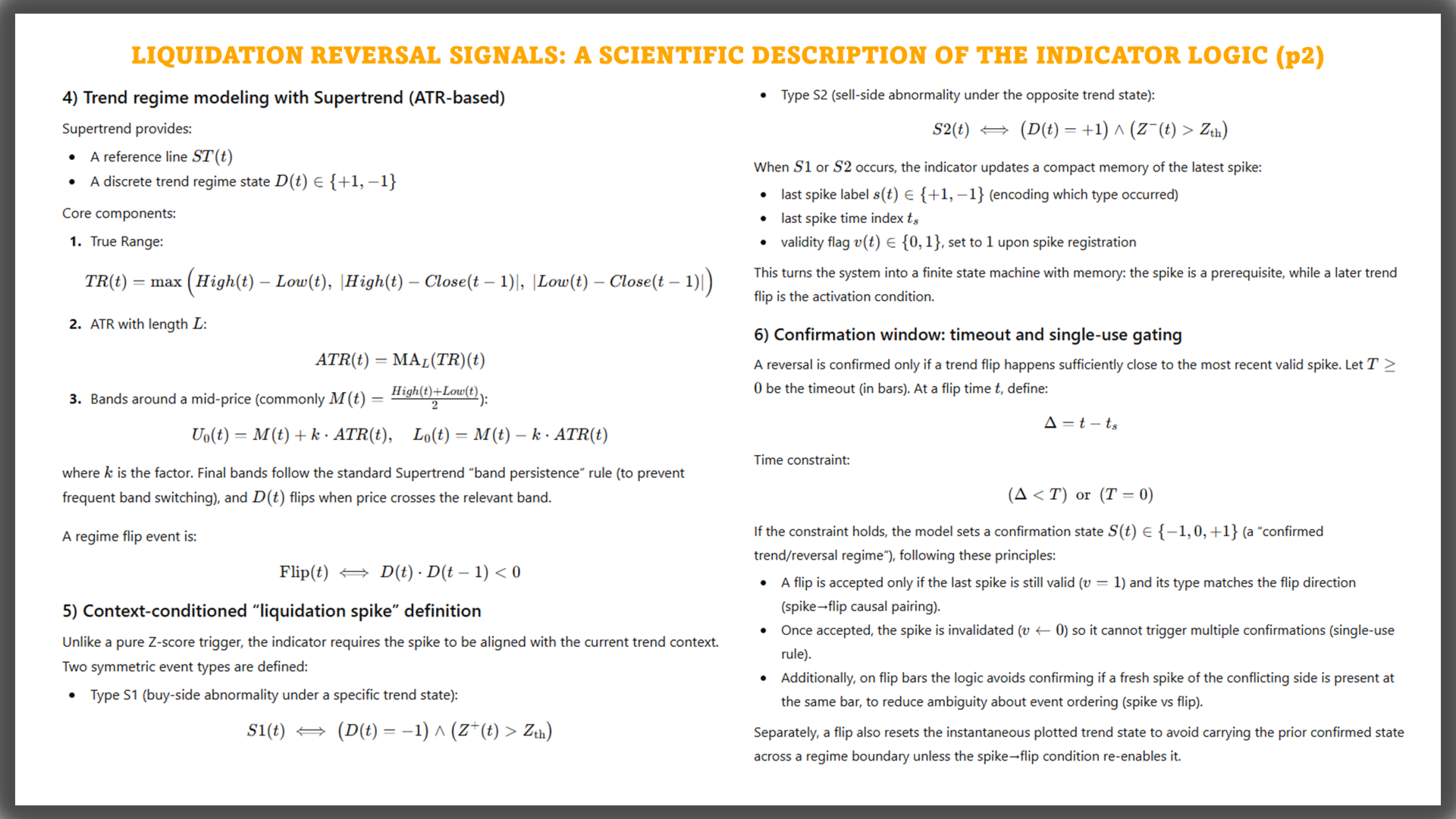 Reversal signals: confirmed only when Supertrend flips state while the recorded liquidation event remains valid inside a Timeout window.