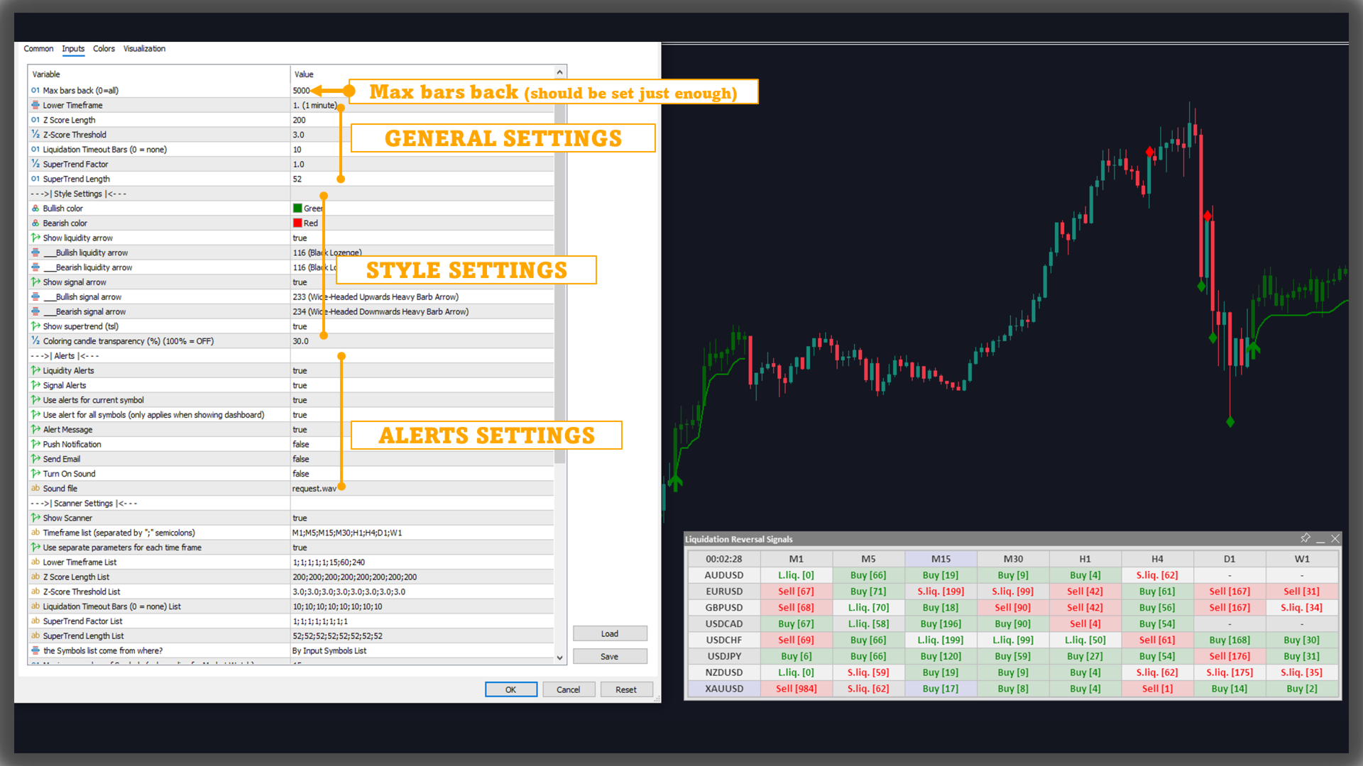 See more MT4 version at: Liquidation Reversal Signals MT4 Scanner