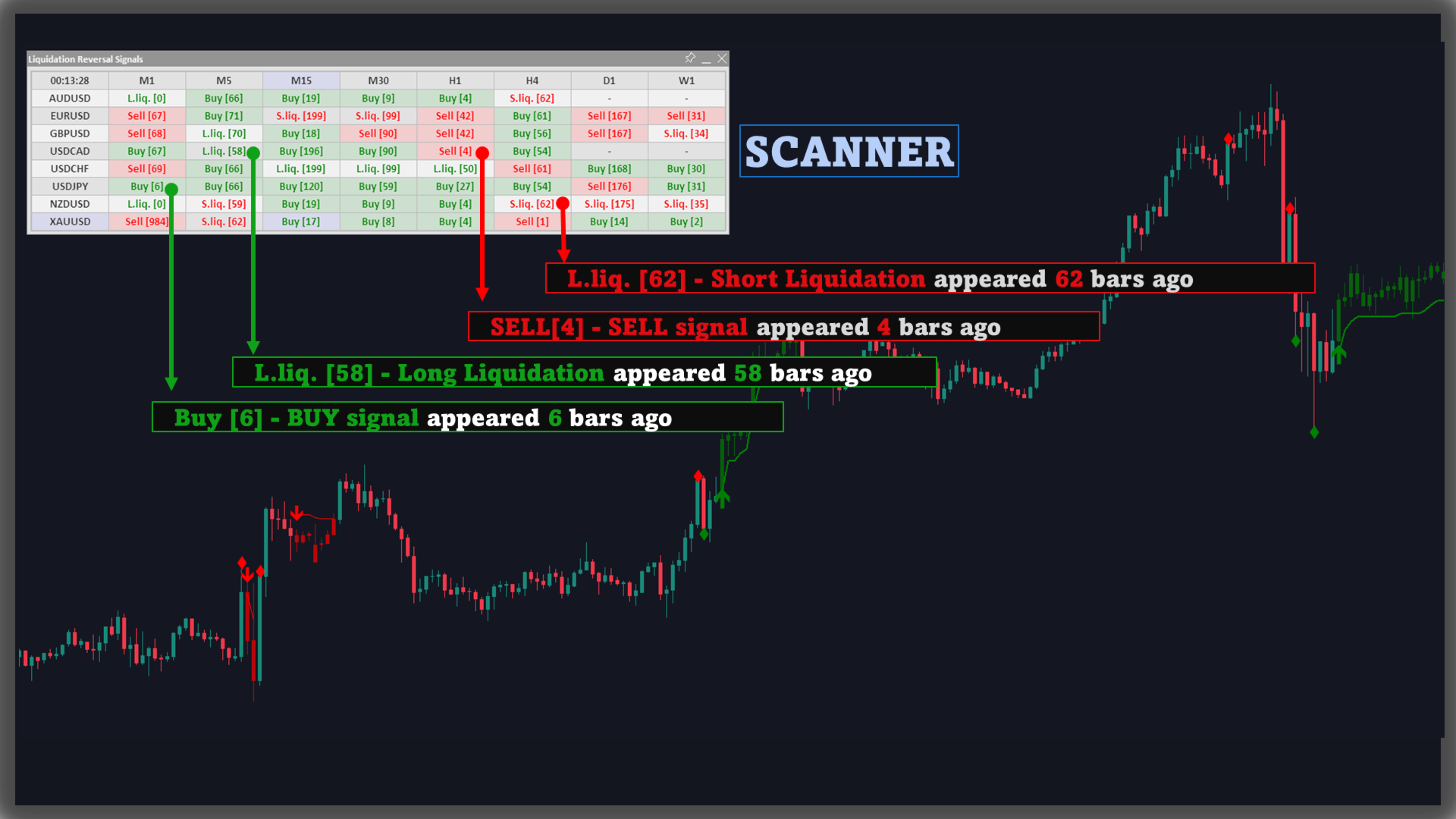 Liquidation Reversal Signals MT4 Scanner