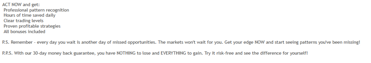 There is no control over signal timing. I need alerts when a new double top or double bottom forms, or at specific stages such as the neckline breakout. The scanner also displays older patterns without providing an option to filter signals based on defined conditions.