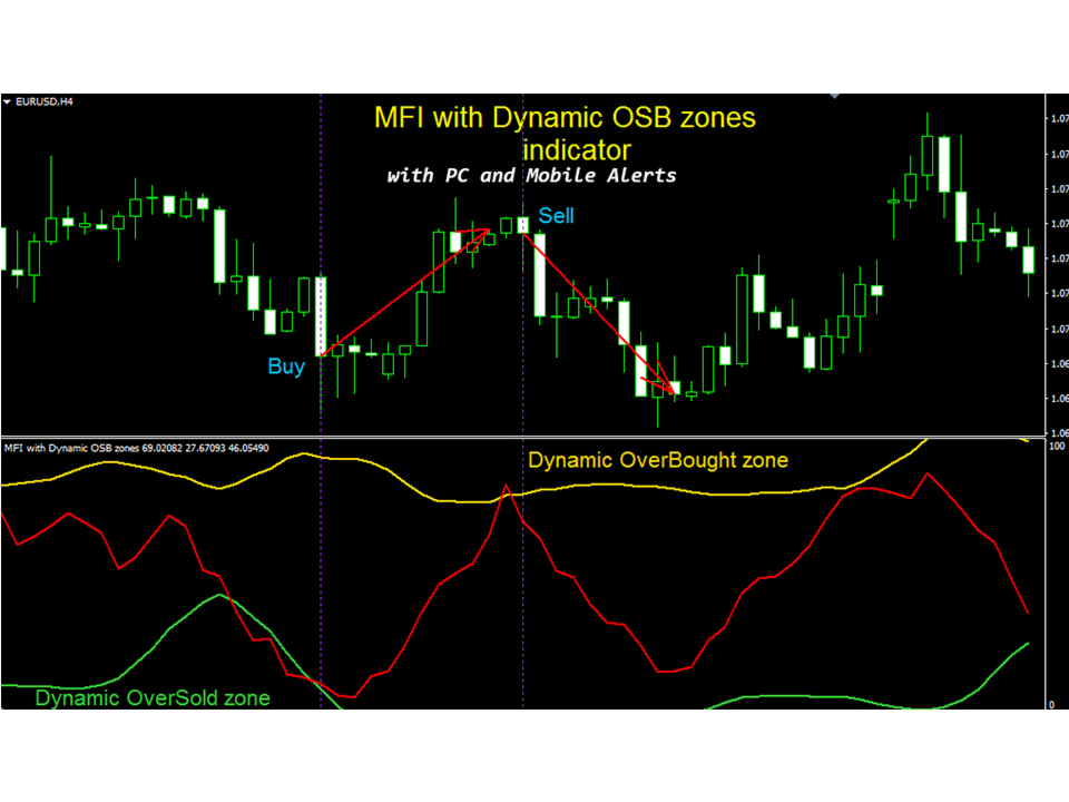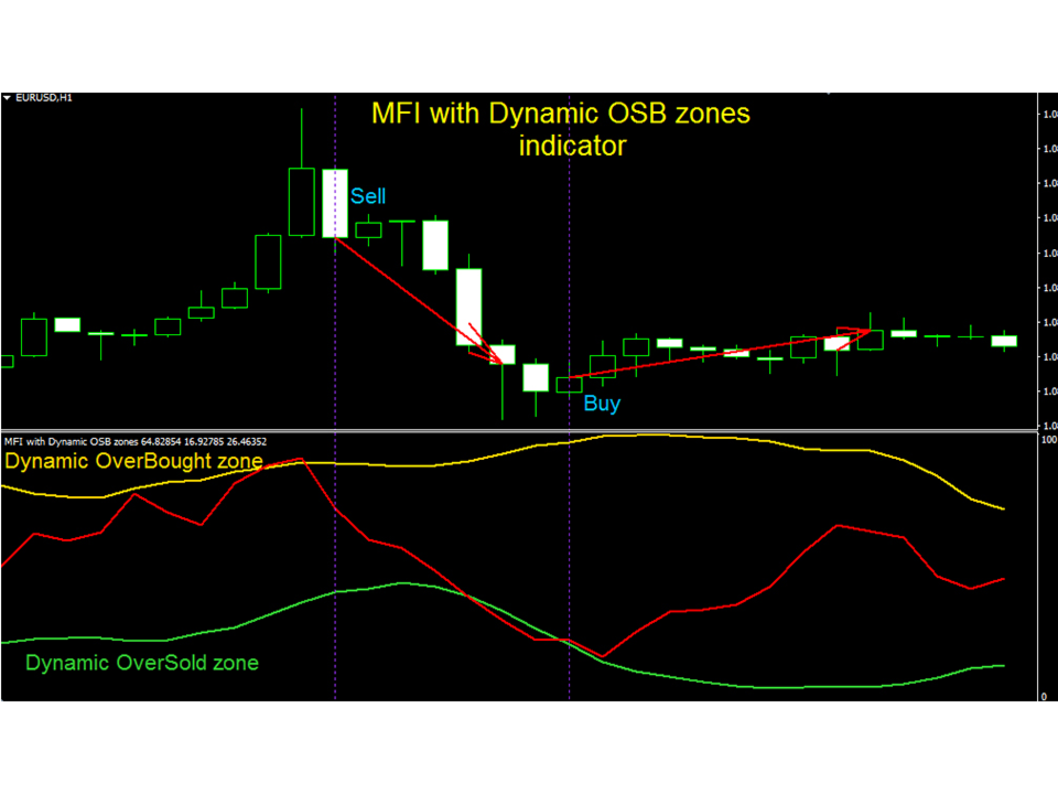Crypto_Forex Indicator "MFI with Dynamic OverSold/OverBought zones" for MT4, No Repaint.