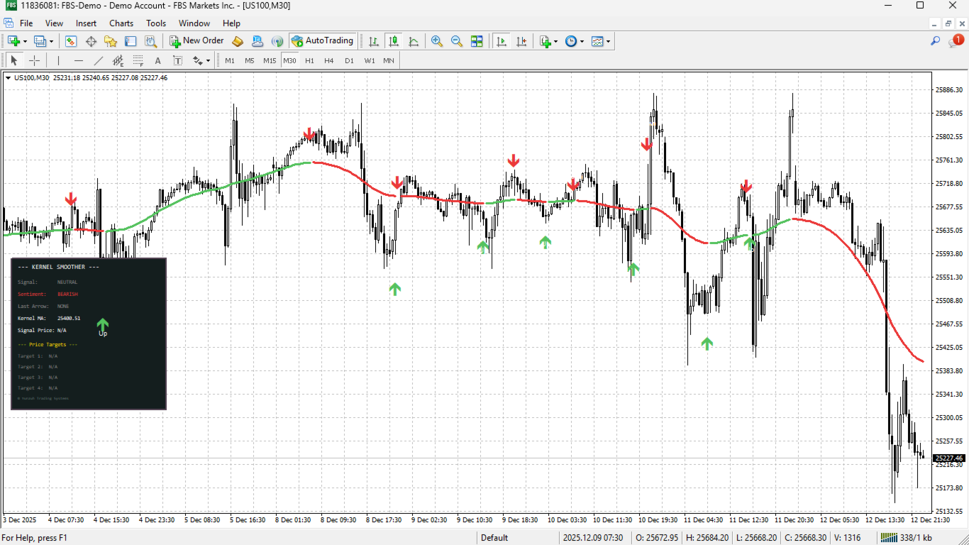The combination of advanced mathematics, real-time analytics, price projections, and professional visual design creates a complete trading system within a single indicator. Whether you are a beginner seeking clear directional guidance or an experienced trader requiring sophisticated analytical tools, the Advanced Kernel Smoother delivers institutional-grade analysis with retail-friendly usability.