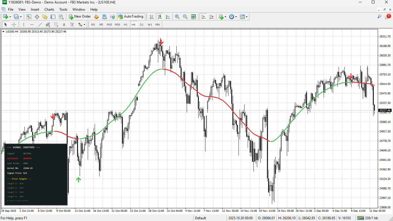 The Advanced Kernel Smoother transforms complex mathematical concepts into actionable trading signals, delivered through an intuitive interface that respects both the science of market analysis and the art of trading execution.