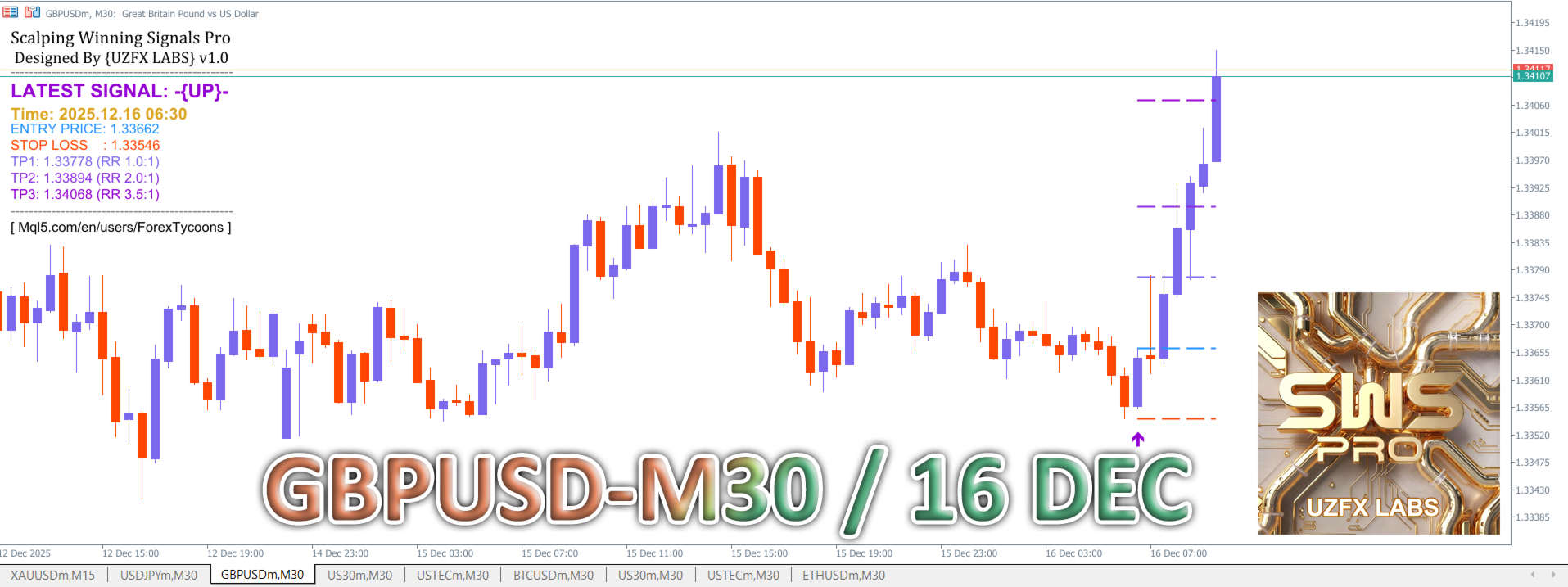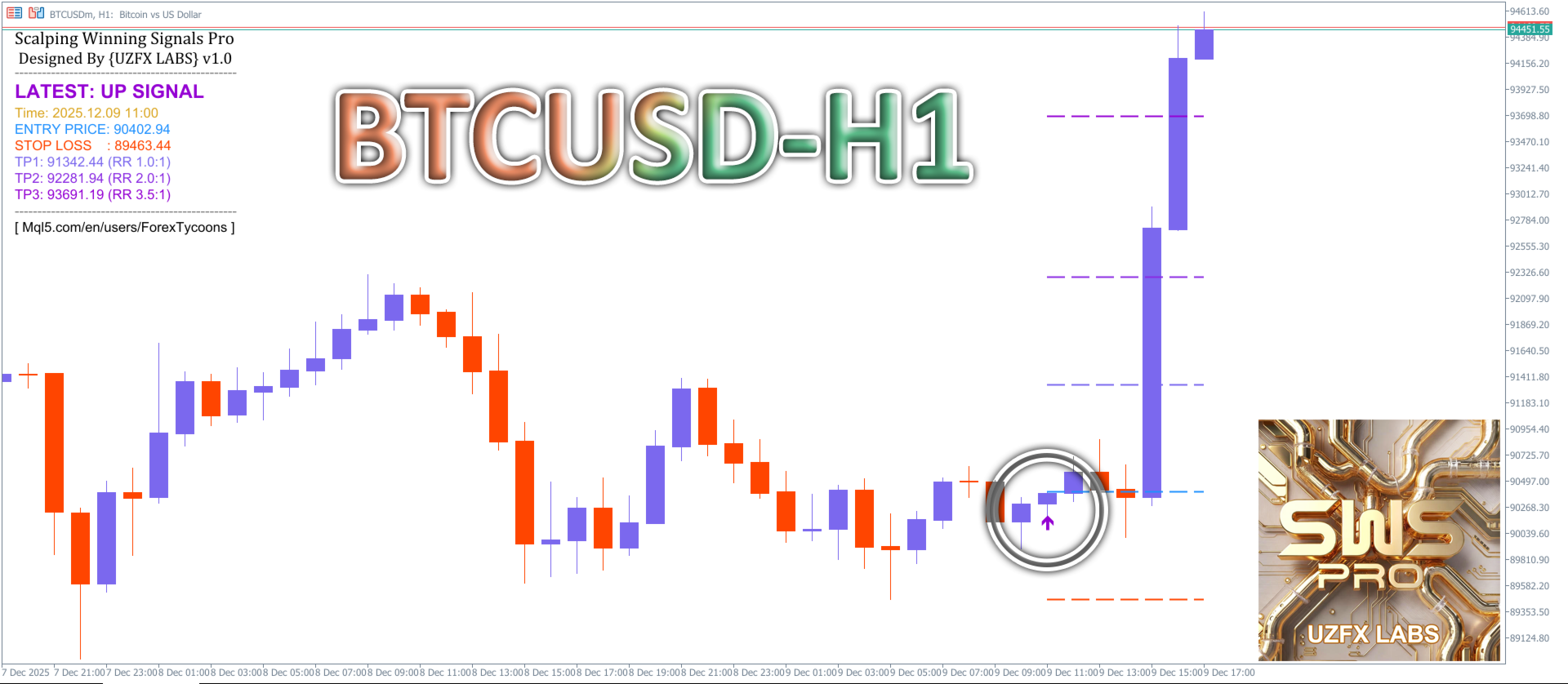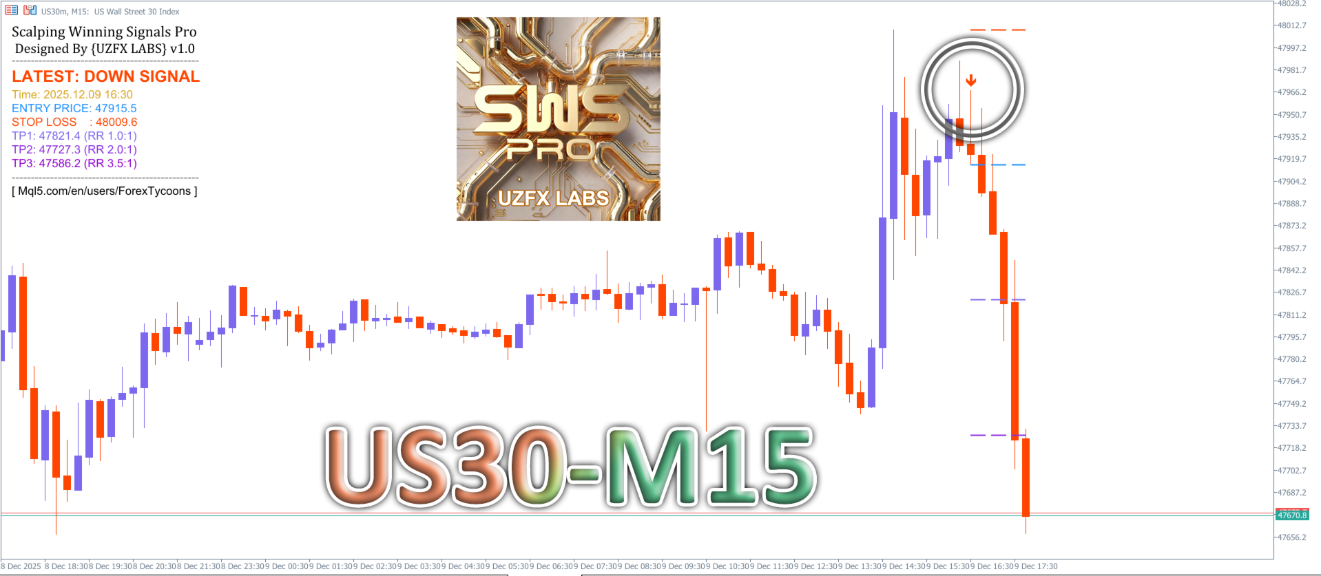 Designed for all currency pairs, commodities, and timeframes, the UZFX SWS PRO helps traders identify winning scalping opportunities with enhanced risk-reward management.