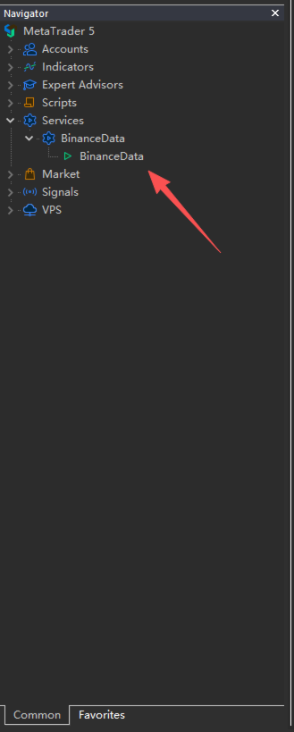 Please first drag and drop the downloaded file to the corresponding service folder (` MQL5 \ Services `) in the MT5 data directory, and confirm that the file has been successfully placed. Subsequently, double-click to run the startup service, and the system will automatically load the relevant components and initialize the service environment.