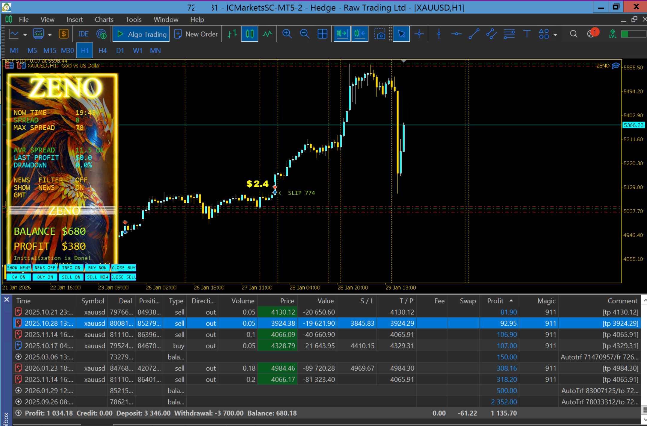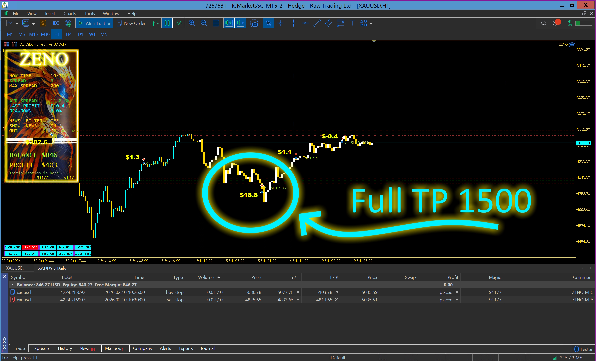 ZENO Real Profit +292 points ICMarkets RAW