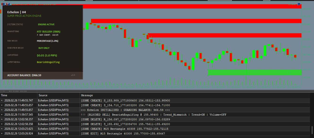 Important Notice: Trading involves risk. Past performance does not guarantee future results. Echelon follows your directives and structure, enforcing your risk and execution preferences. Use it with discipline, respect the market, and trade only with capital you are prepared to commit