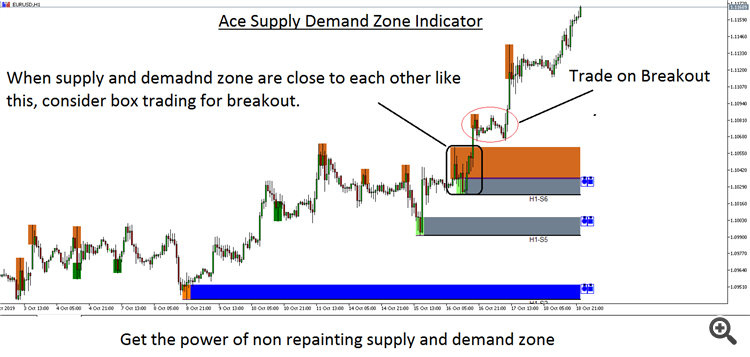 One additional trading tactics with our non repainting supply demand zone is box trading for breakout. When the supply and demand zone are adjacent and paired to form a box. This is great opportunity for breakout.
