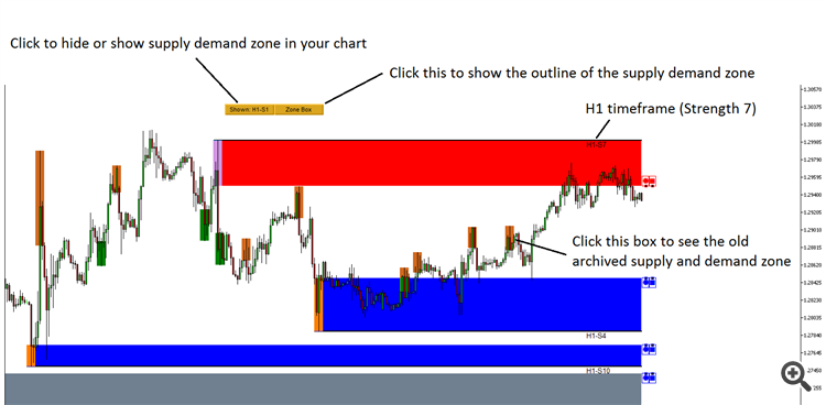 You can also show or hide zones from your chart using button click. Check the screehshot for some more tips.