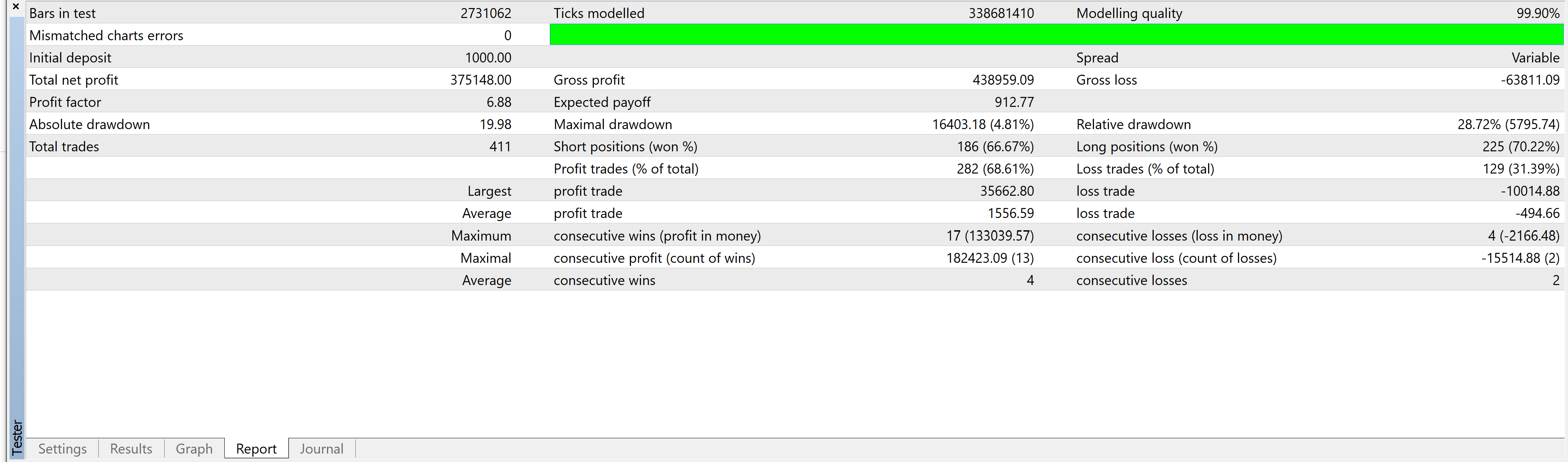 1000 $ up to 400.000 ,Near SL , LOW DD ,99.90% quality Backtest