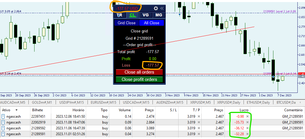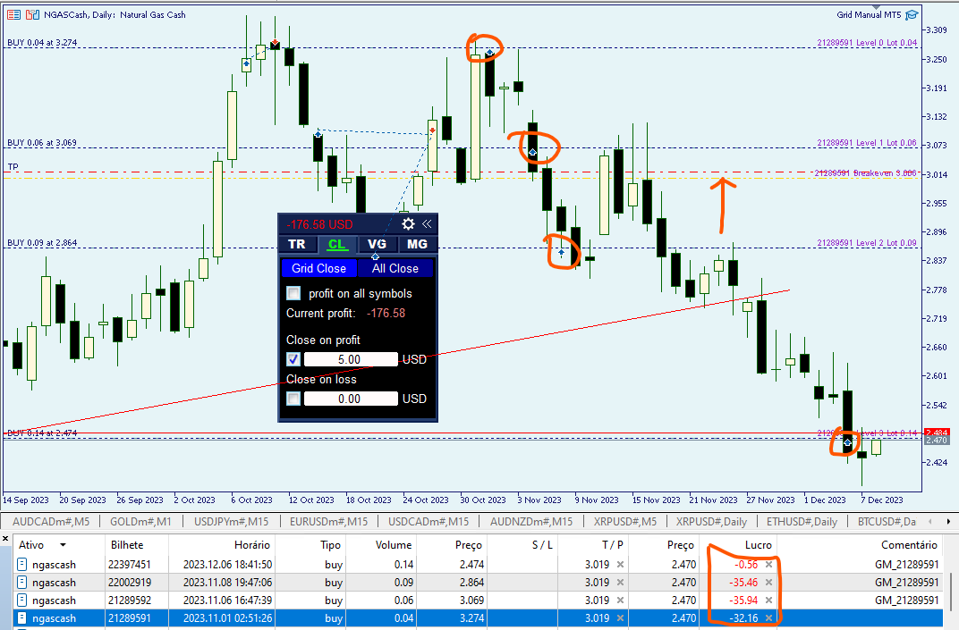 As shown, I have 4 positions open, they sum up a loss of -104,12 but it is being calculated by the EA as -176,85, this error makes the breakeven line to be wrong calculated as well as the take profit etc... I will post the screenshot of the asset specification too, just in case that it useful for you, its Natural Gas. Thank you!!