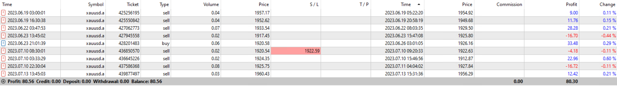 A good short trade by the EA on 25/7/2023