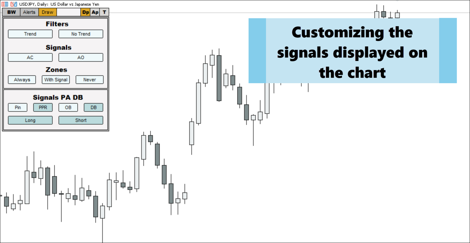 The Price Action Finder indicator is an indicator of entry points, which is designed to search and display patterns of the Price Action system on a price chart. The indicator is equipped with a system of trend filters, as well as a system of alerts and push notifications. Manual (Be sure to read before purchasing) | Version for MT5 Advantages 1. Patterns: Pin bar, Outside bar, Inside bar, PPR, Power bar, Hanging man, Inverted hammer 2. Pattern filtering system. Removes countertrend patterns from