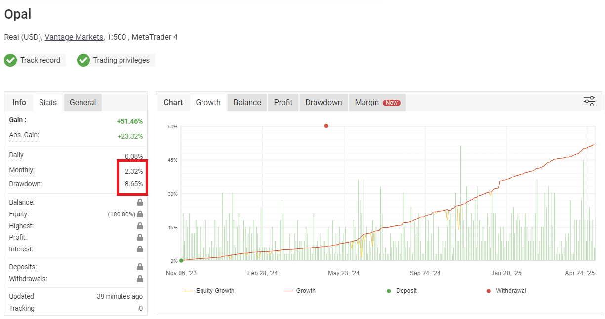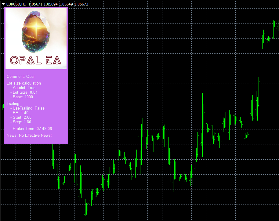 Limited Time Offer: 50% Off One-Day Introductory Price! Opal is a powerful tool using cutting-edge algorithms and AI-driven calculations. This fully automated EA encompasses the exceptional qualities we associate with the opulent gemstone: proper decision-making, prudence and strong protection. The capital is protected by advanced money management modules, filters, two-step trailing stop and flexible customizing. Opal also takes into account the study of psychological levels in financial