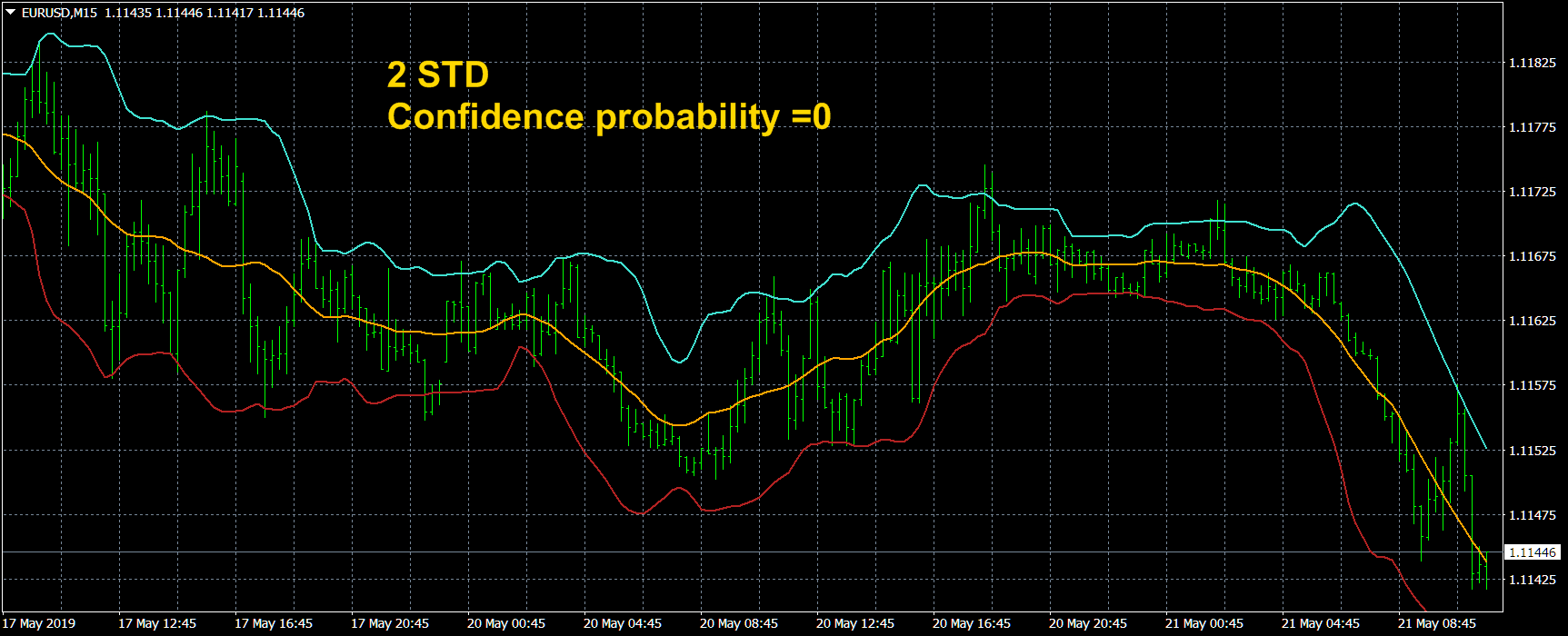 ✔️3. StopLoss lines calculated from current price probability distributions and selected probability of closing an order by StopLoss before the trend reversal;