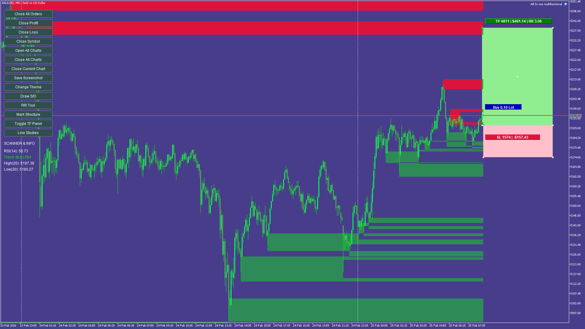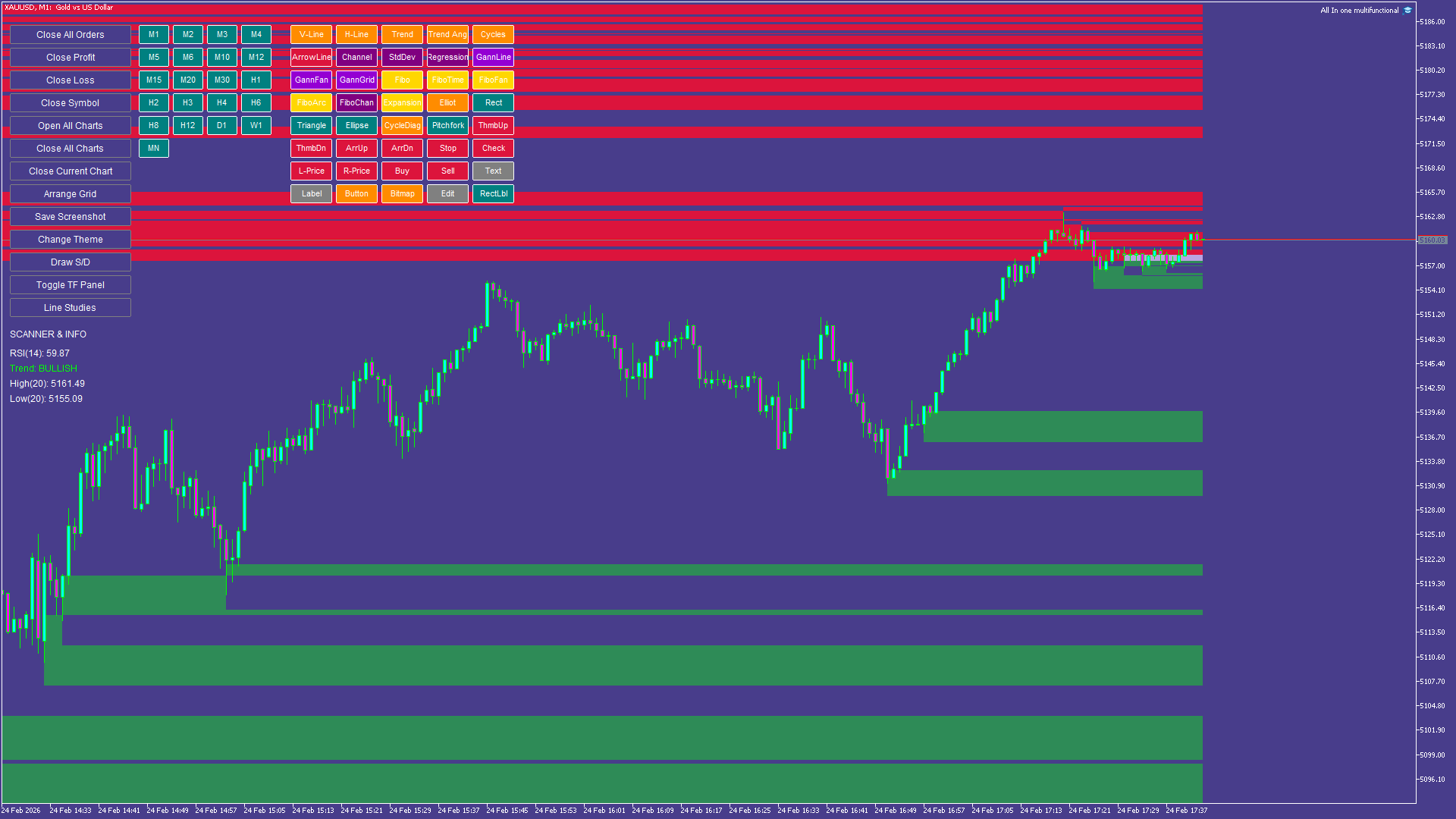 All-In-One Multi-Functional Dashboard is a comprehensive trading utility designed to streamline your workflow, enhance your technical analysis, and simplify trade management on MetaTrader 5. Instead of cluttering your charts with multiple indicators and scripts, this single Expert Advisor provides a unified control panel that handles everything from market structure analysis and supply/demand zones to risk management and trade execution. Built entirely in pure MQL5 without DLL dependencies