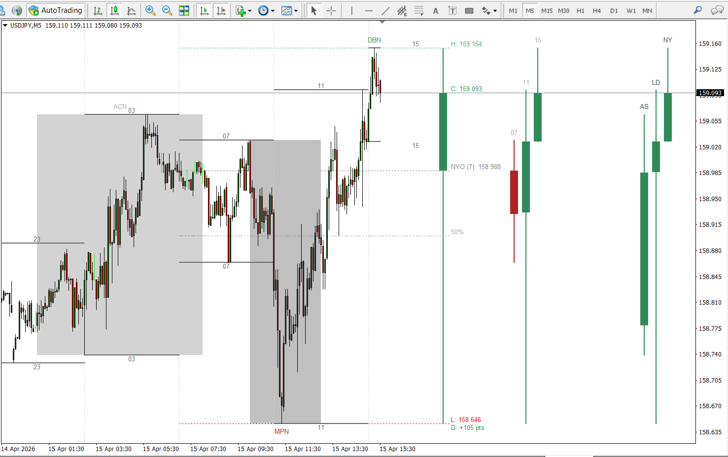 1. NEW: H7 Session PO3 Overlay — The daily cycle is now decomposed into three session-aligned candles (Asia, London, New York) displayed as overlay blocks alongside or instead of the H4 overlay candle where each 7-hour candle represents one PO3 phase: Asia = Accumulation, London = Manipulation, New York = Distribution. Traders can now mechanically profile whether the day is an Asia Reversal, London Reversal, or NY Reversal day — directly from the single chart.