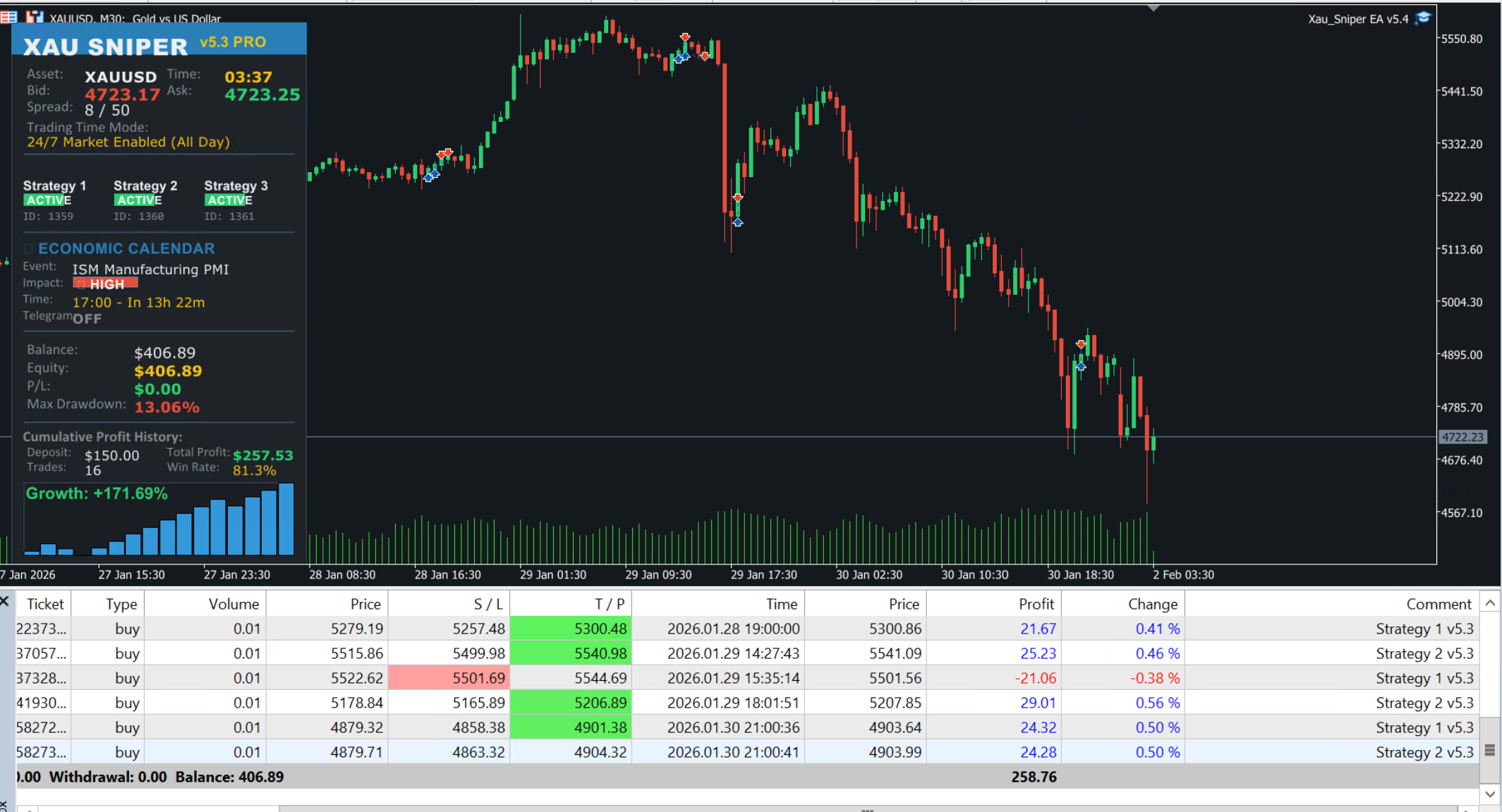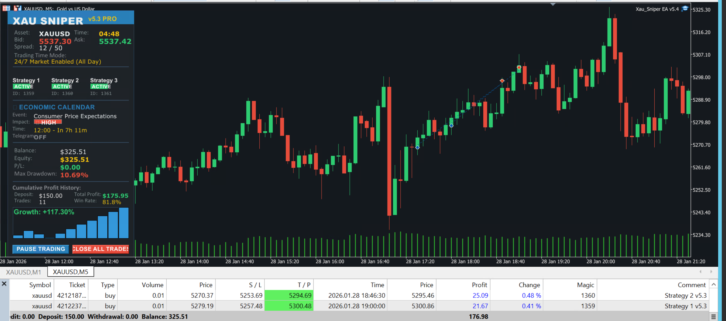 On January 28, 2026, XAU Sniper Pro activated Strategy 1 & Strategy 2.