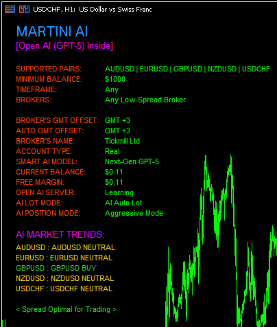 Welcome to the installation and features guide of Martini AI Expert Advisor. About Martini AI EA is an advanced trading Expert Advisor designed for AUDUSD, EURUSD, GBPUSD, NZDUSD, and USDCHF. It focuses on safety, consistent returns, and scalable profitability...