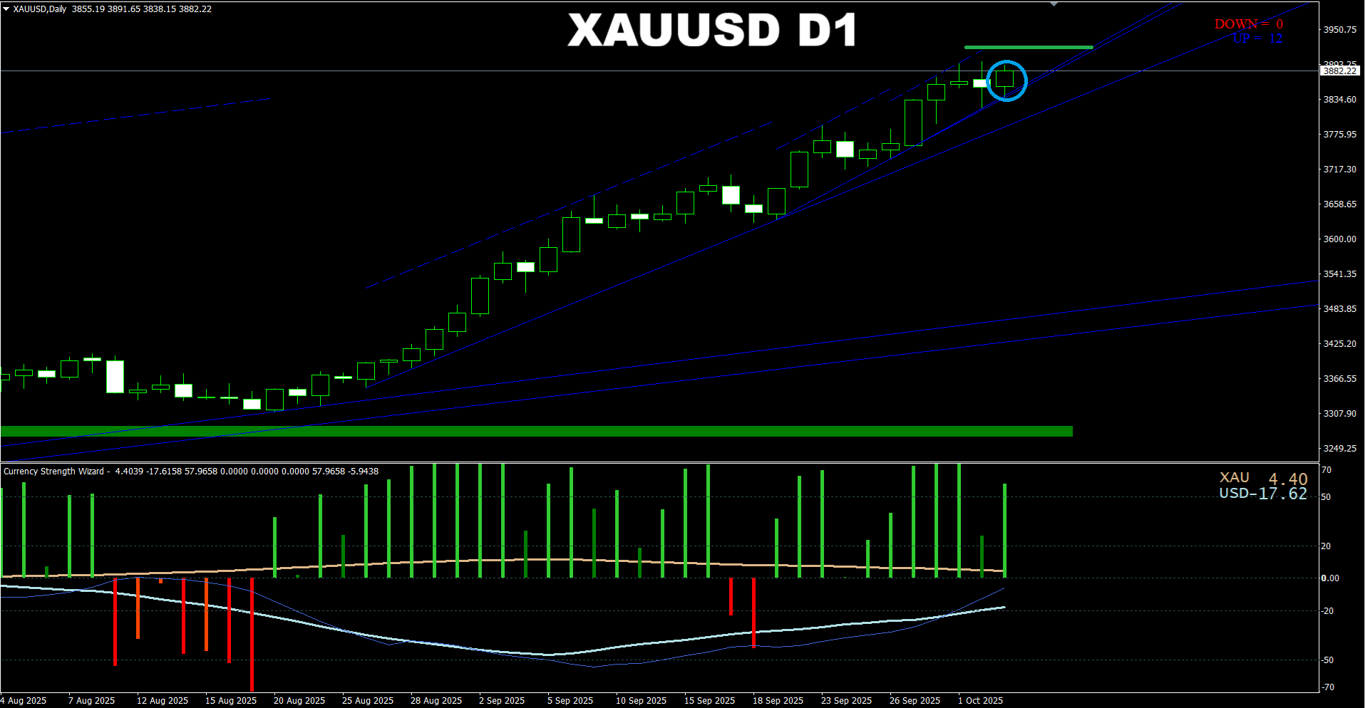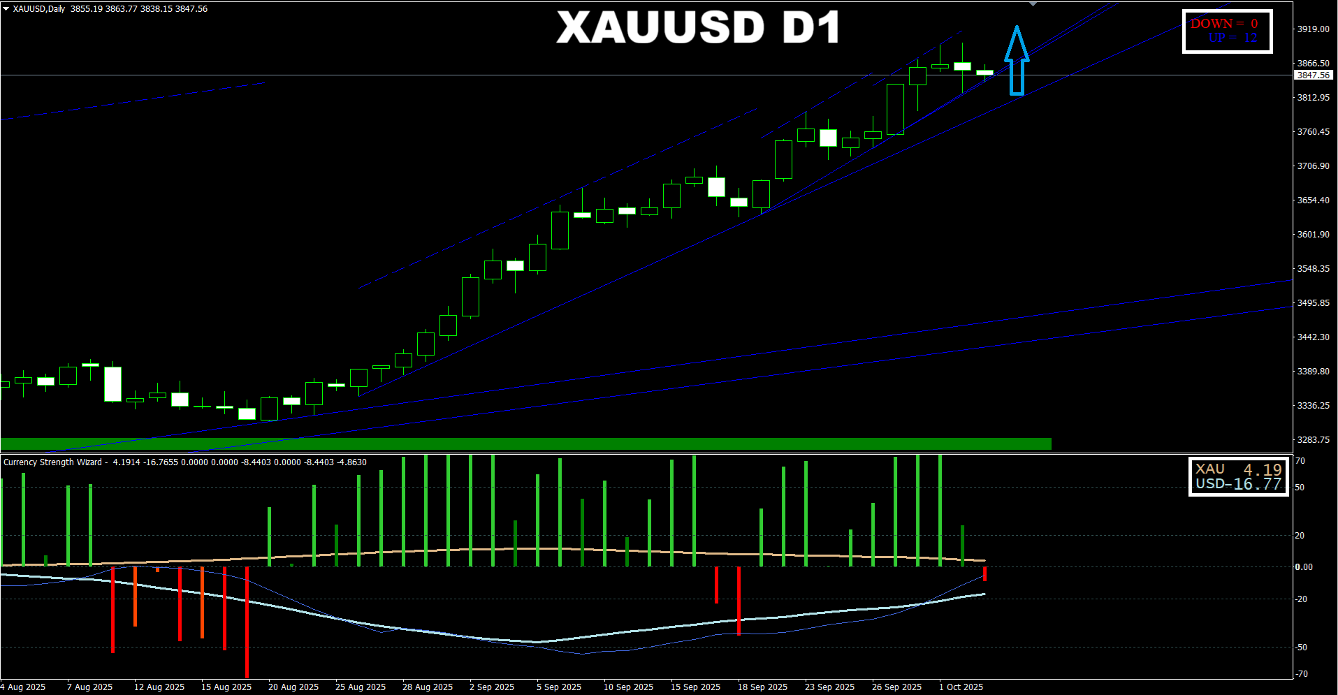 Currency Strength Wizard + Daily Candle Predictor. XAUUSD D1. Update on recent BUY signal I provided today in the morning based on the Daily Candle Predictor. As we see the prediction was right and the candle is clearly bullish. By the way the green horizontal line I put on the chart is the area the price will be heading to. So the chance of a new UP breakout is high enough for this to happen.