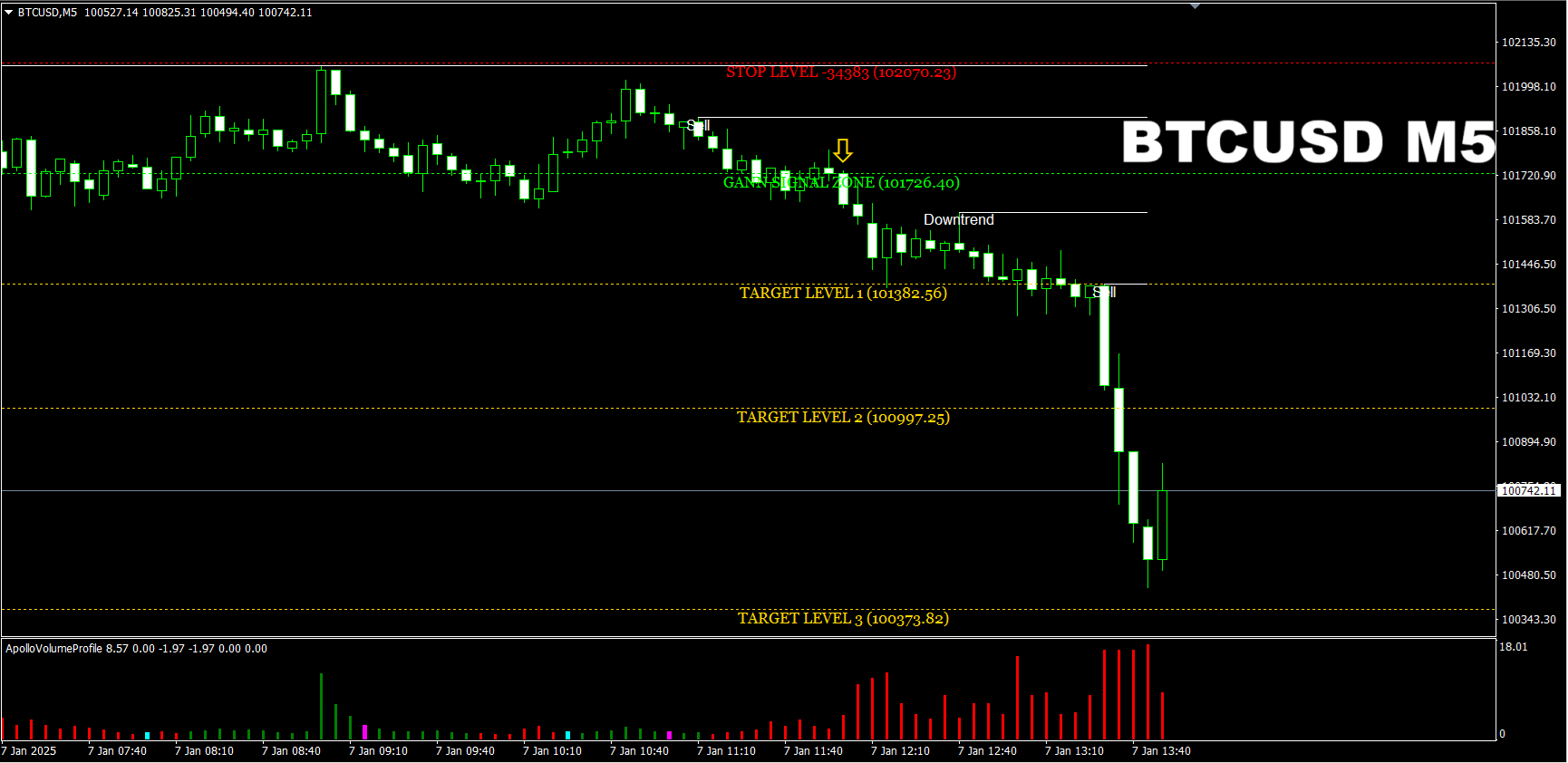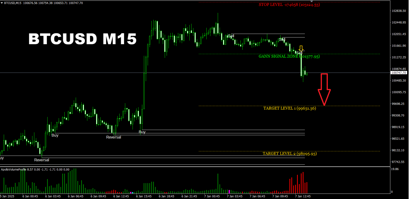 Gann Made Easy on BTCUSD M5. Today's intraday SELL signal.