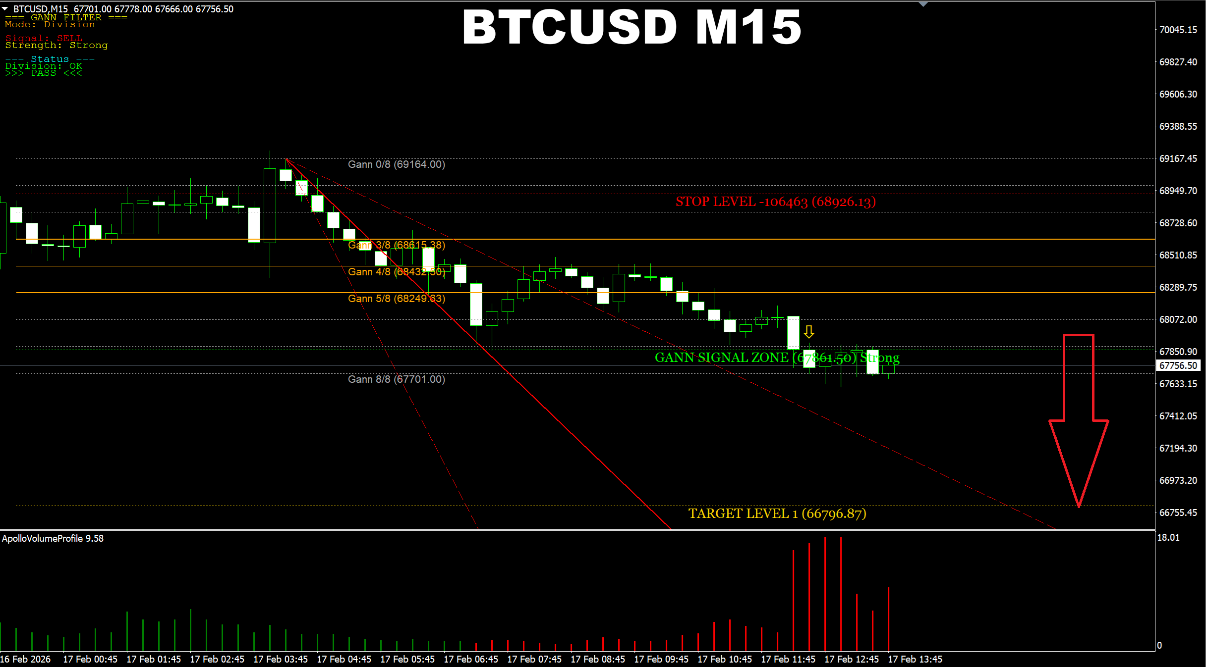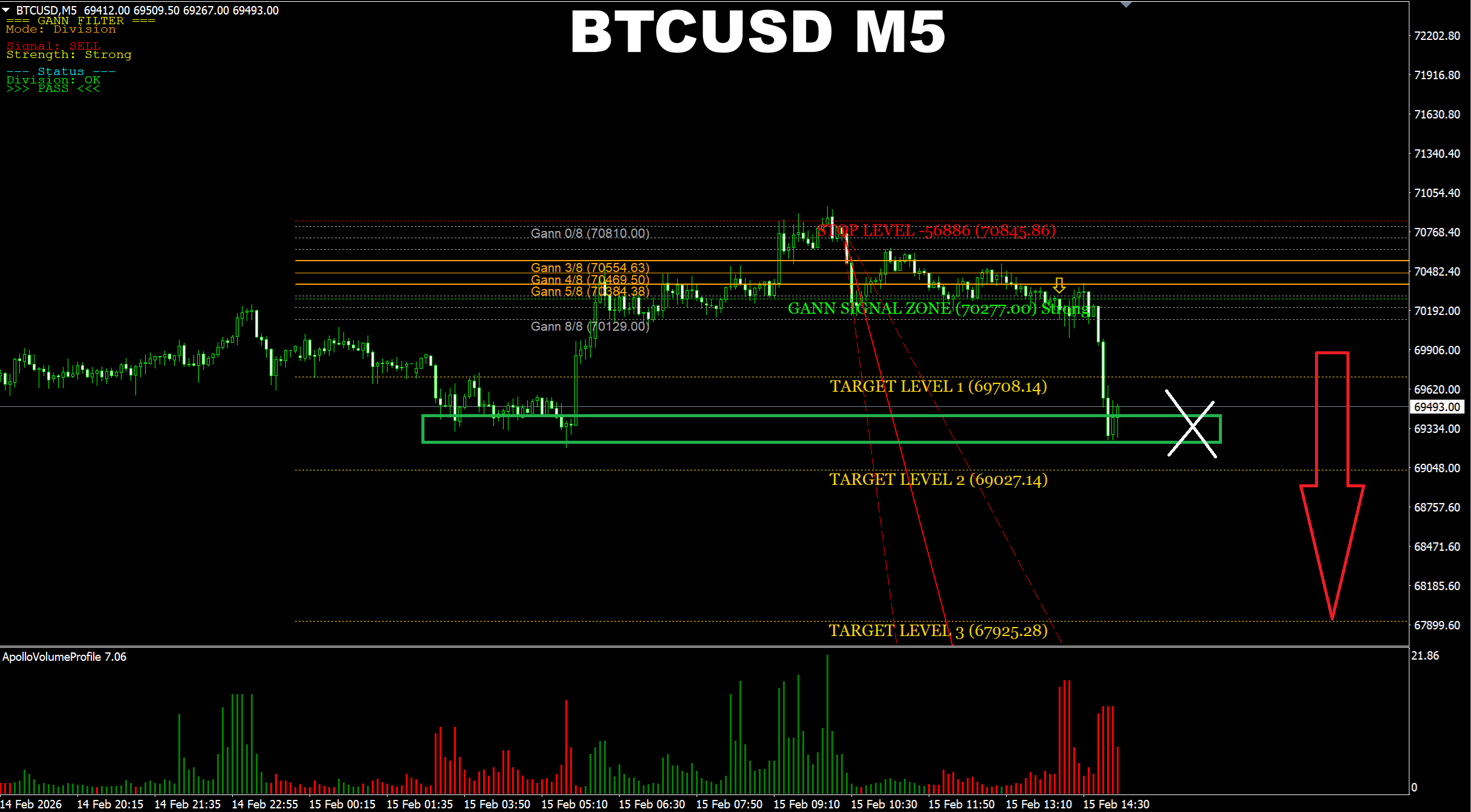 Gann Made Easy. BTCUSD M15. Update on BUY signal progress. Price has reached the earlier predicted area.