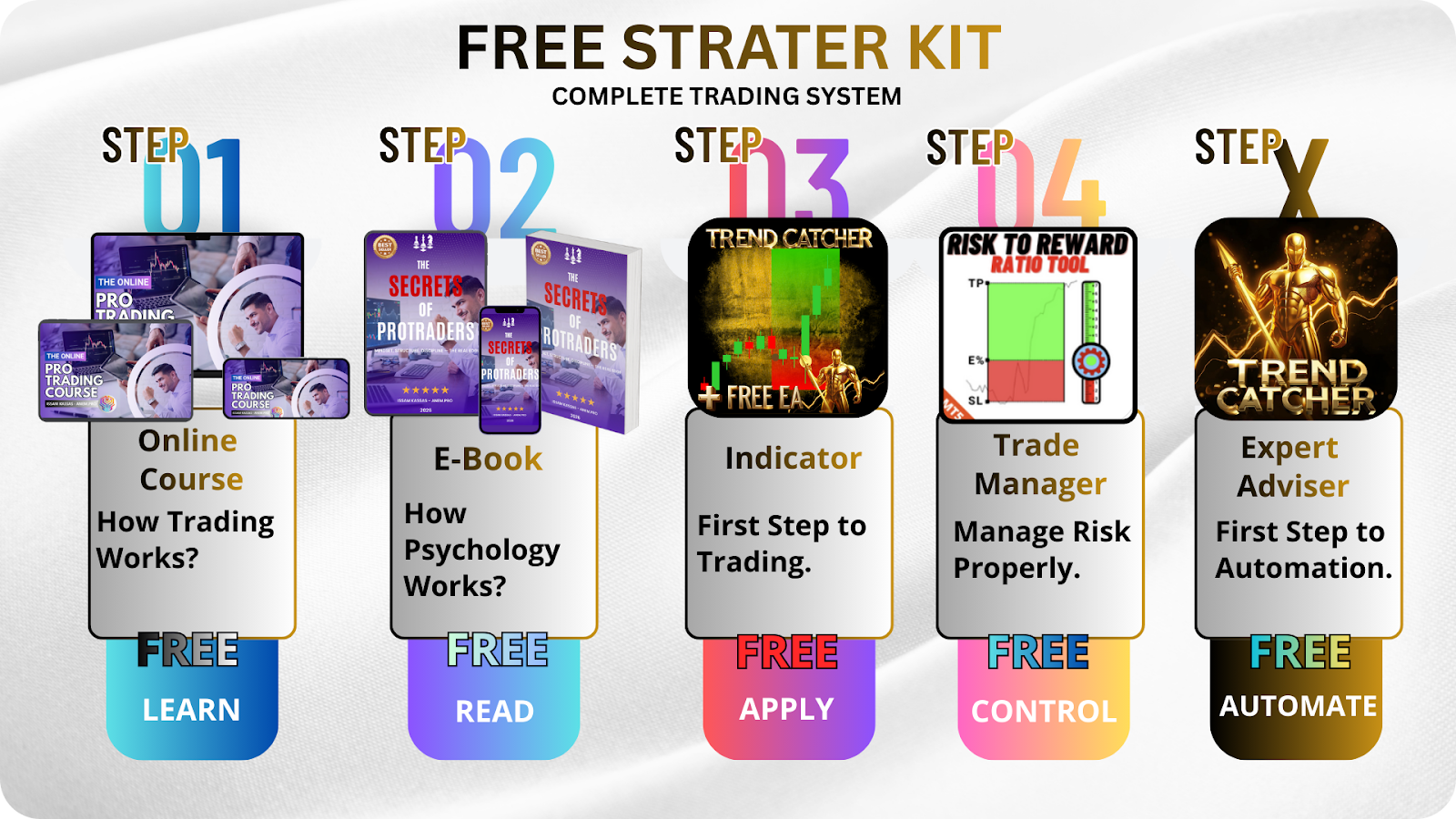 Start your journey with a structured path: learn the fundamentals, understand psychology, master risk, apply real tools, and explore automation.