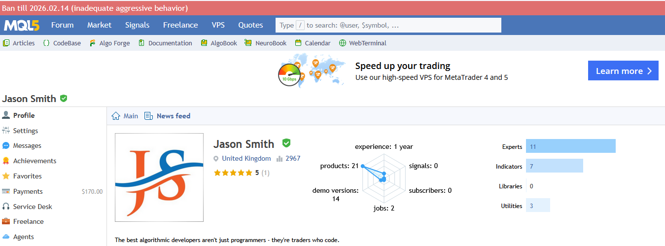 Traders, due to ongoing unexpected behavior by MQL5, I’ve decided to delete my profile.