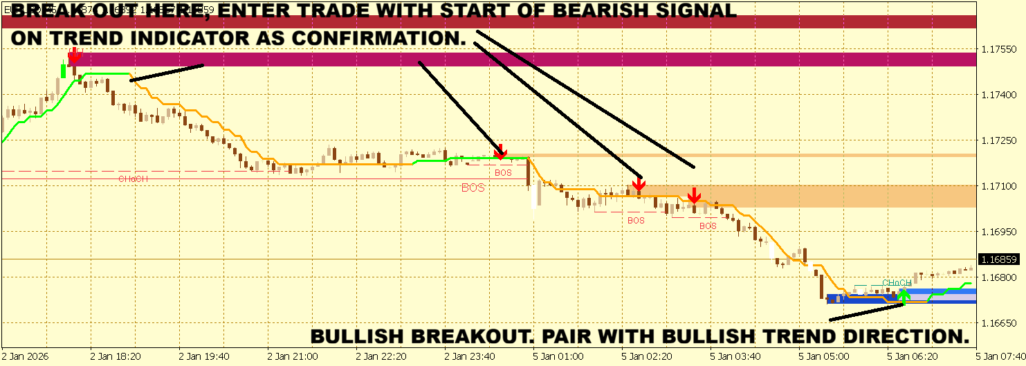 Overview Break Out Zones is a comprehensive market structure analysis indicator for MT4 that identifies and displays key price levels, order blocks, and structural breakouts in real-time. The indicator helps traders understand market flow by automatically detecting swing points, internal structure changes, and significant zones where price action may react. Key Features 1. Market Structure Detection Automatic identification of swing highs and lows with configurable length parameter. Internal