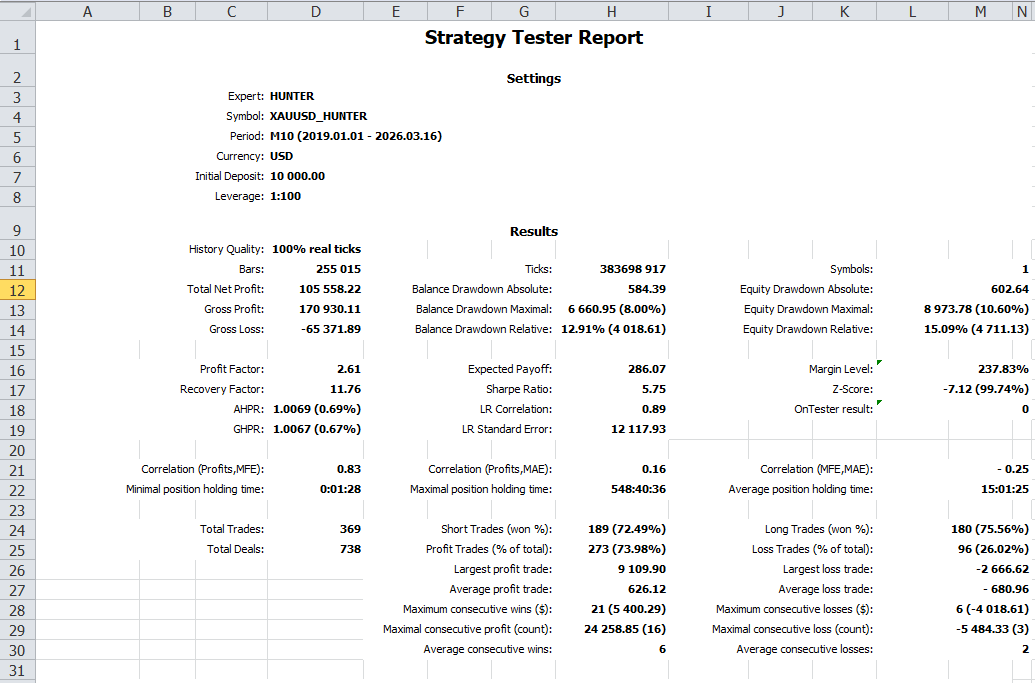 ⚠️ Important Note on Demo Testing! To replicate HUNTER's true performance, you must use a complete and real historical data set (Every tick based on real ticks)