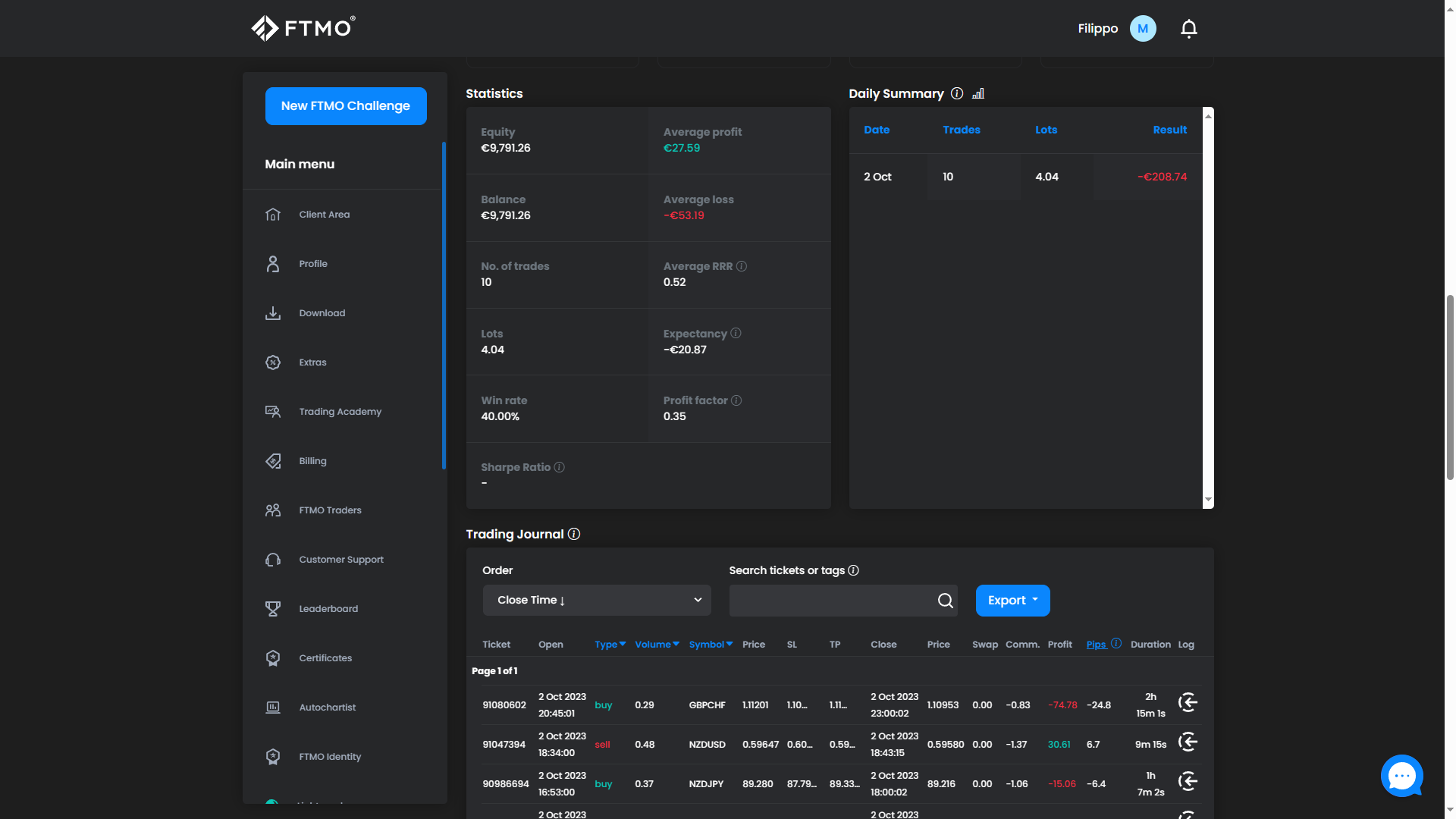 ftmo 10k challenge day 1: