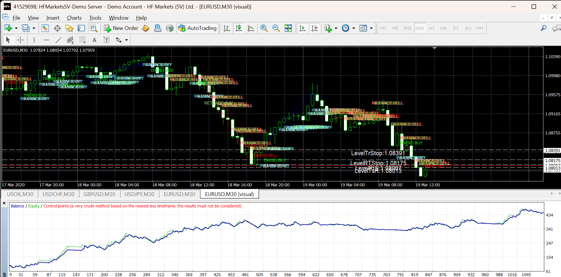 DayNight HighLow is base on support and resistance levels, as well as averages of highs and lows. It detects trade direction and sends notification to your mobile phone so that you can enter/exit a trade without having to be seated in front of desktop computer all day and night. Although you have to execute/send an order yourself, you can setup rules through the setting made available for proper lots size base on the available balance/fund you are trading with. The opportunity to take a